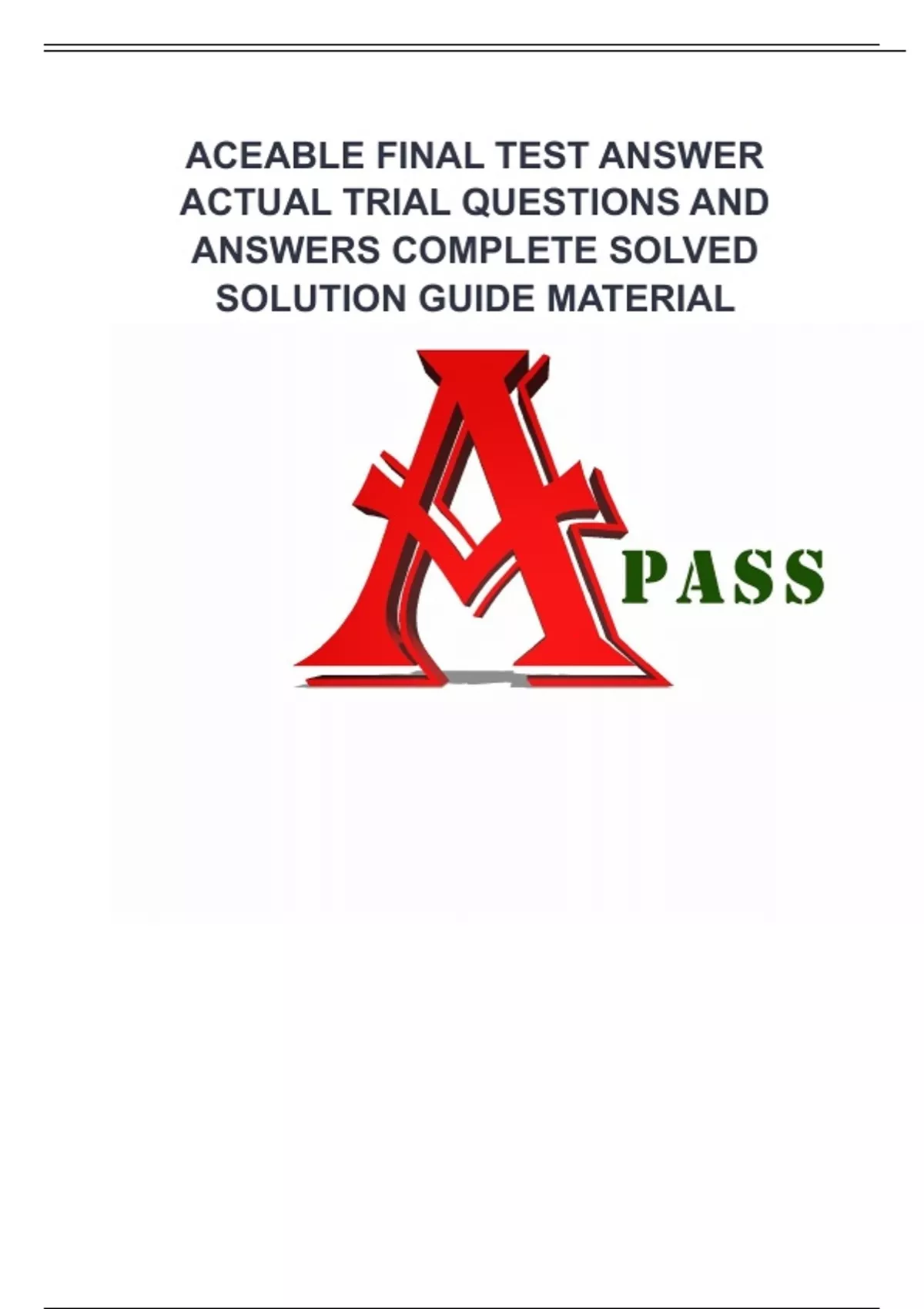 ACEABLE FINAL TEST ANSWER ACTUAL TRIAL QUESTIONS AND ANSWERS COMPLETE SOLVED SOLUTION GUIDE MATERIAL