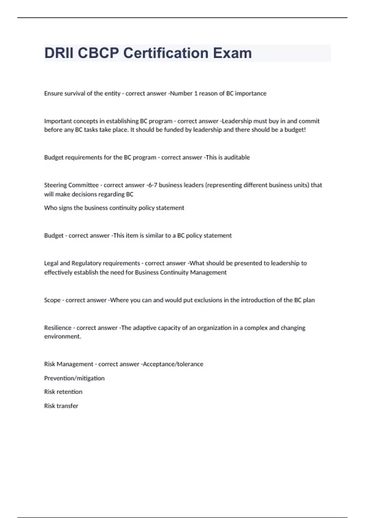 DRII CBCP Certification Exam 2023 with 100% correct answers