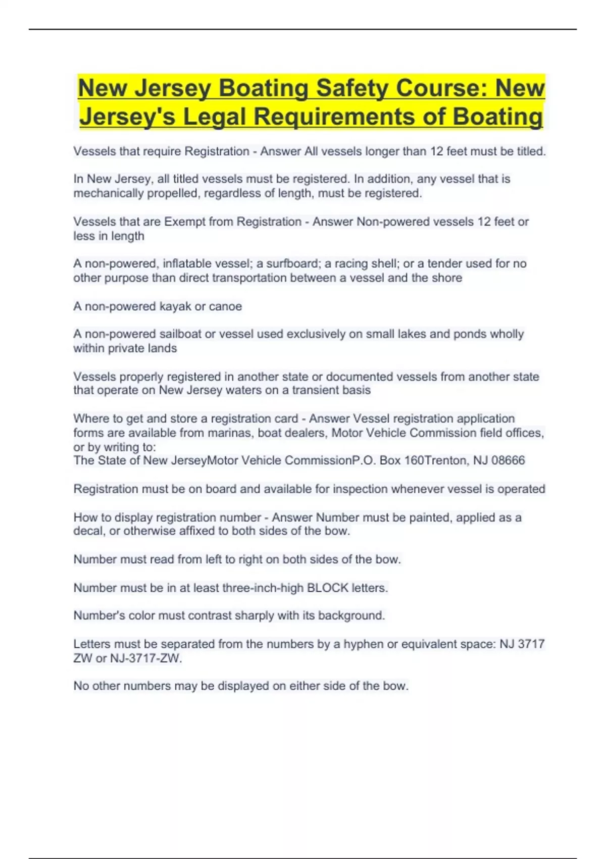 BUNDLE OF NEW JERSEY BOATING EXAM FINAL EXAMS 2023 TEST QUESTIONS WITH CORRECT VERIFIED ANSWERS