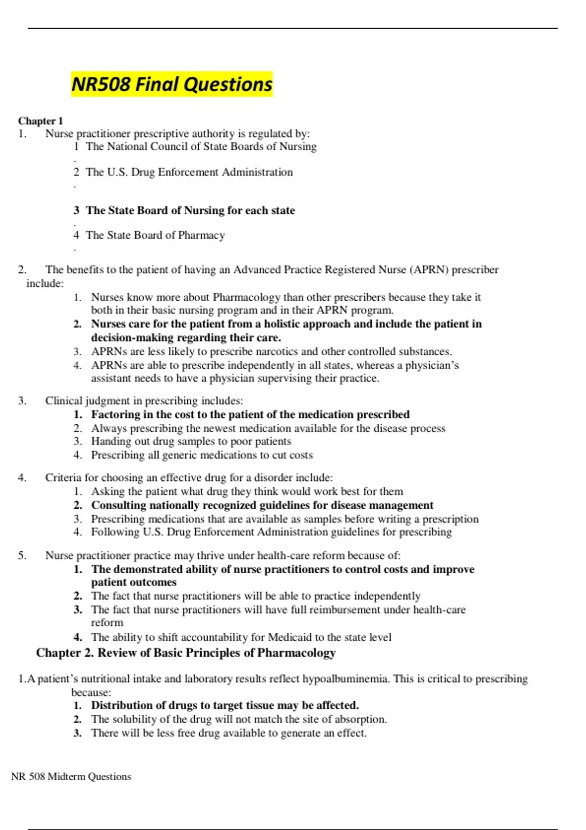 NR 508 ADVANCED PHARMACOLOGY FINAL QUESTIONS 100% Verified Solutions( Graded A)| NR 508 ADVANCED PHARMACOLOGY FINAL QUESTIONS |Nurse practitioner prescriptive authority is regulated by:...