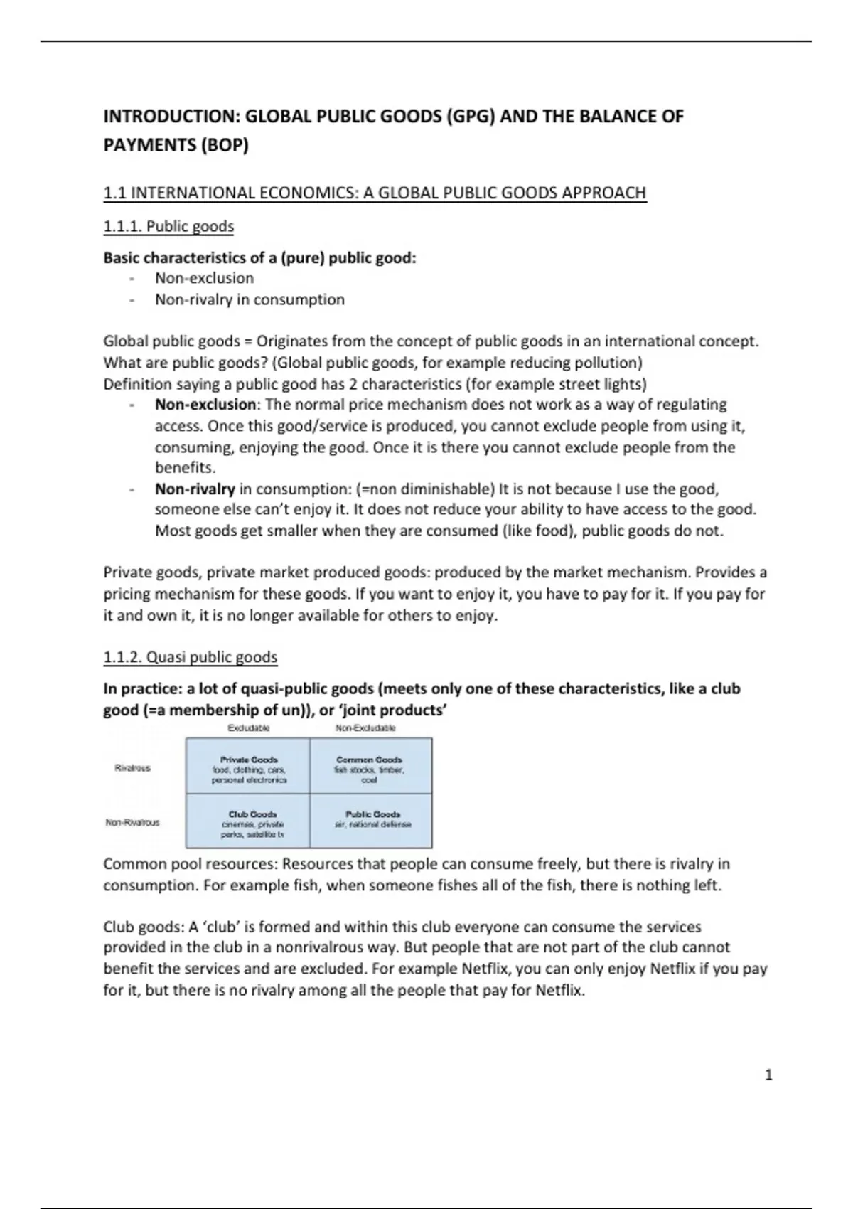 Uitgebreide samenvatting van het vak International Economics and International Economic Organizations (door professor Cassimon en Mavrotas) van het jaar .