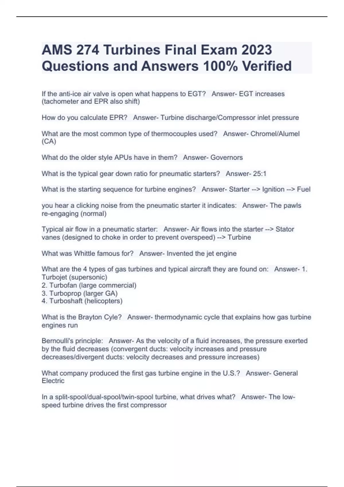 AMS 274 Turbines Final Exam 2023 Questions and Answers 100% Verified