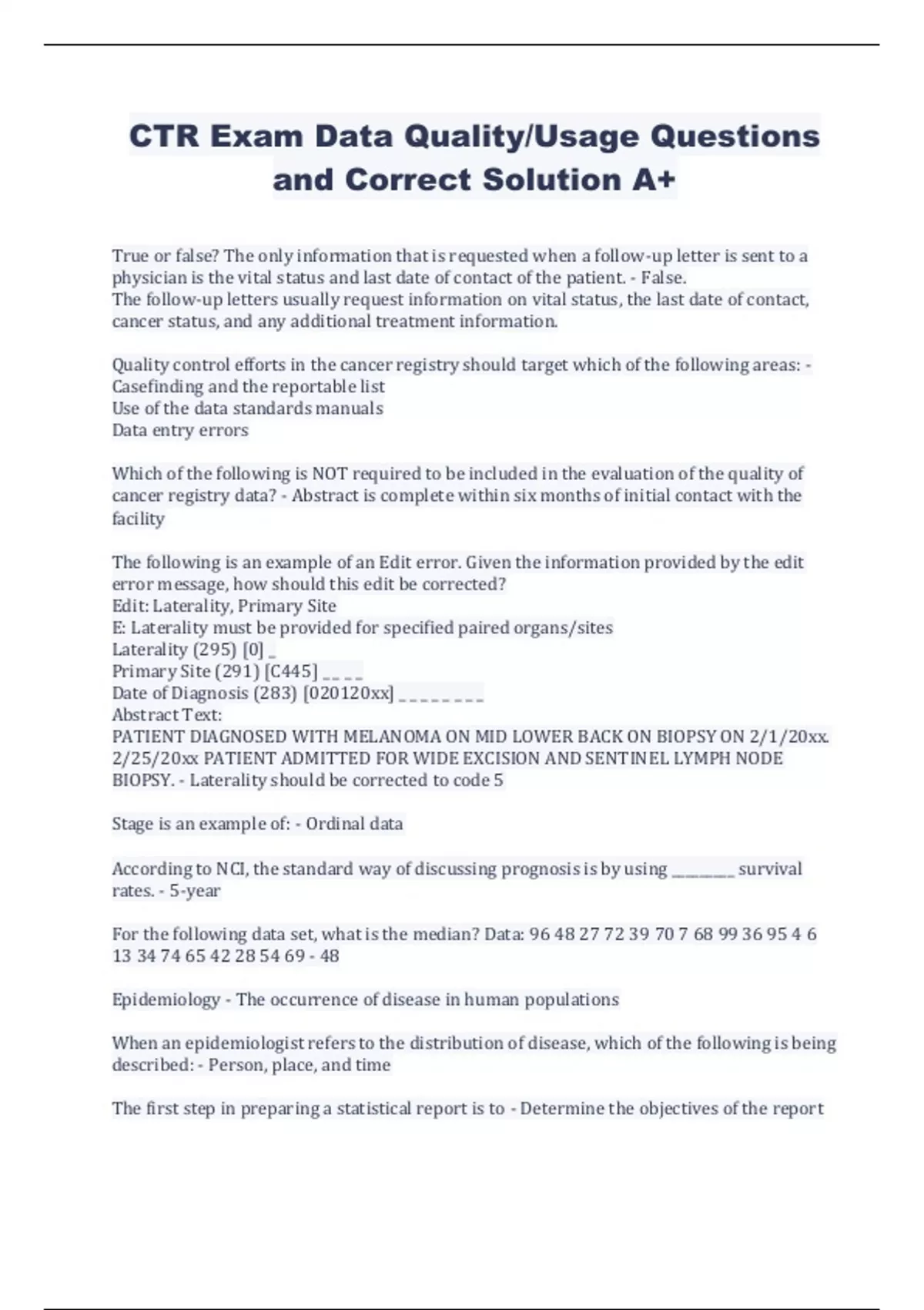 CTR Exam Data Quality/Usage Questions