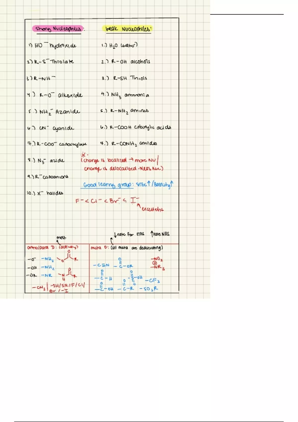 This is a ten-page document that covers all reactions necessary for the Organic Chemistry 1 final exam. It covers topics such as SN1/Sn2 (Nucleophilic Substitution), and Elimination reactions (E1/E2), as well as alkene and alkyne reactions with reagent and substrate examples. Provides tables for solvents and mechanisms with details on stereochemistry and rearrangements.