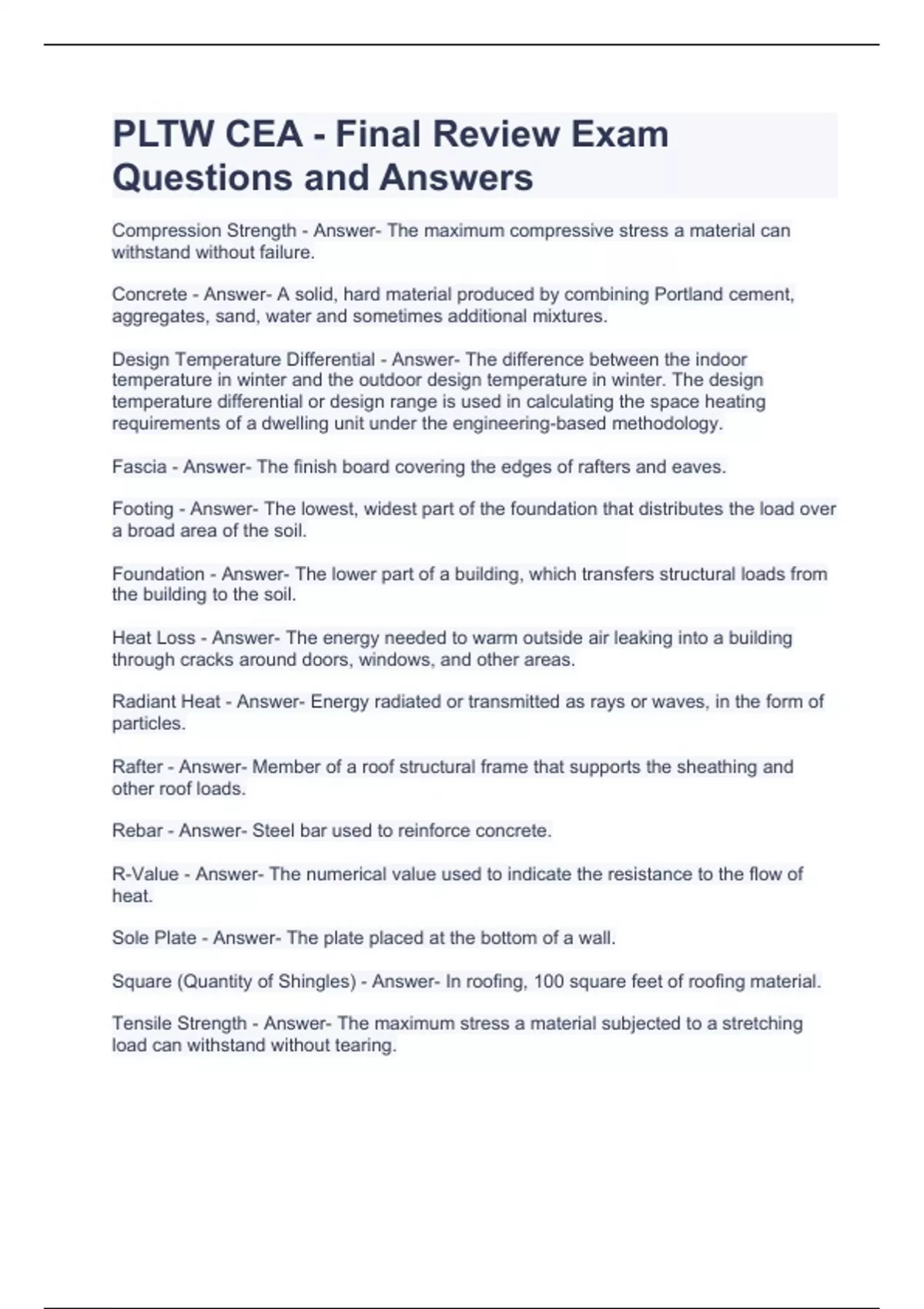 pltw cea final review exam questions and answers