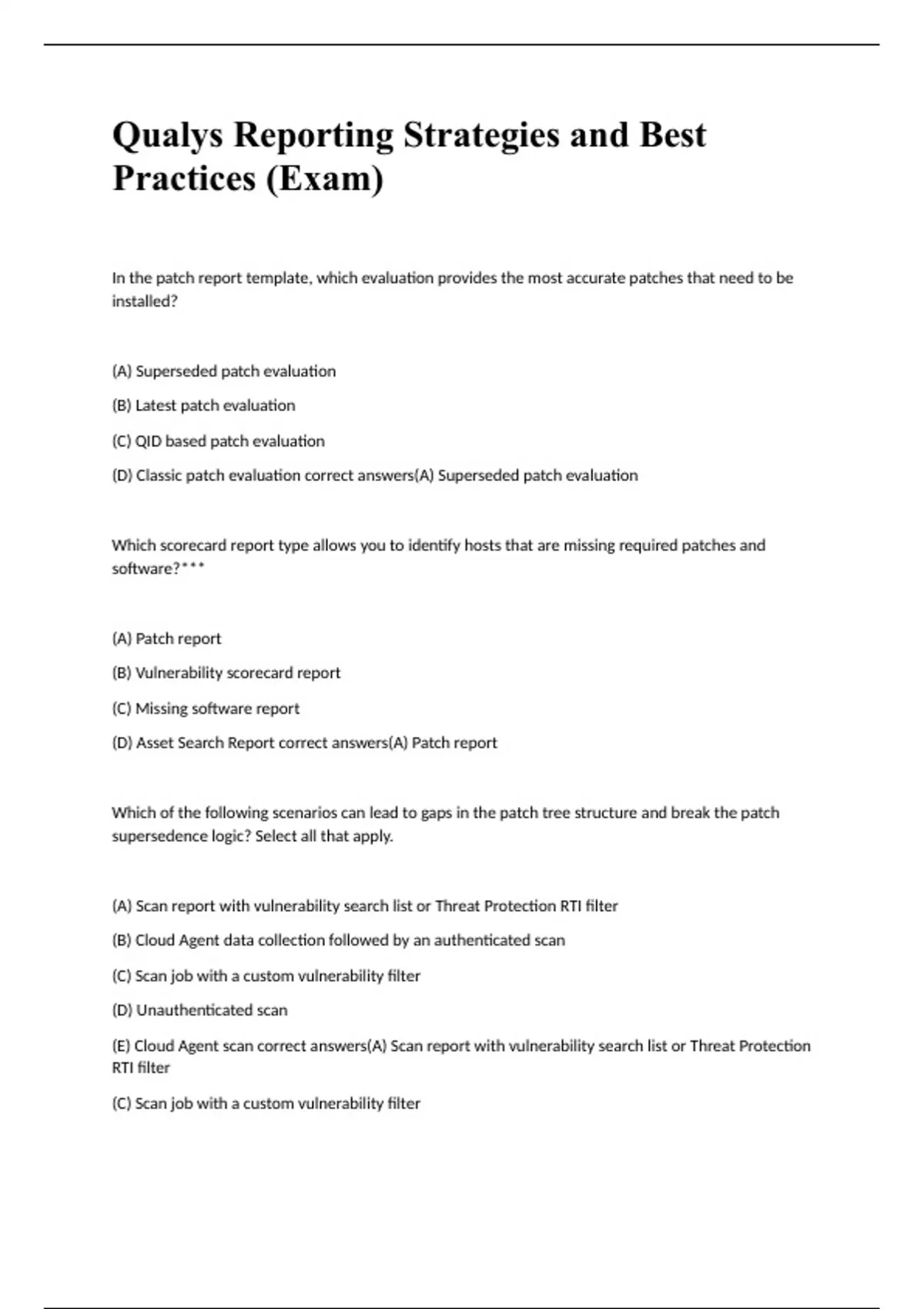 Qualys Reporting Strategies and Best Practices (Exam) with verified solutions