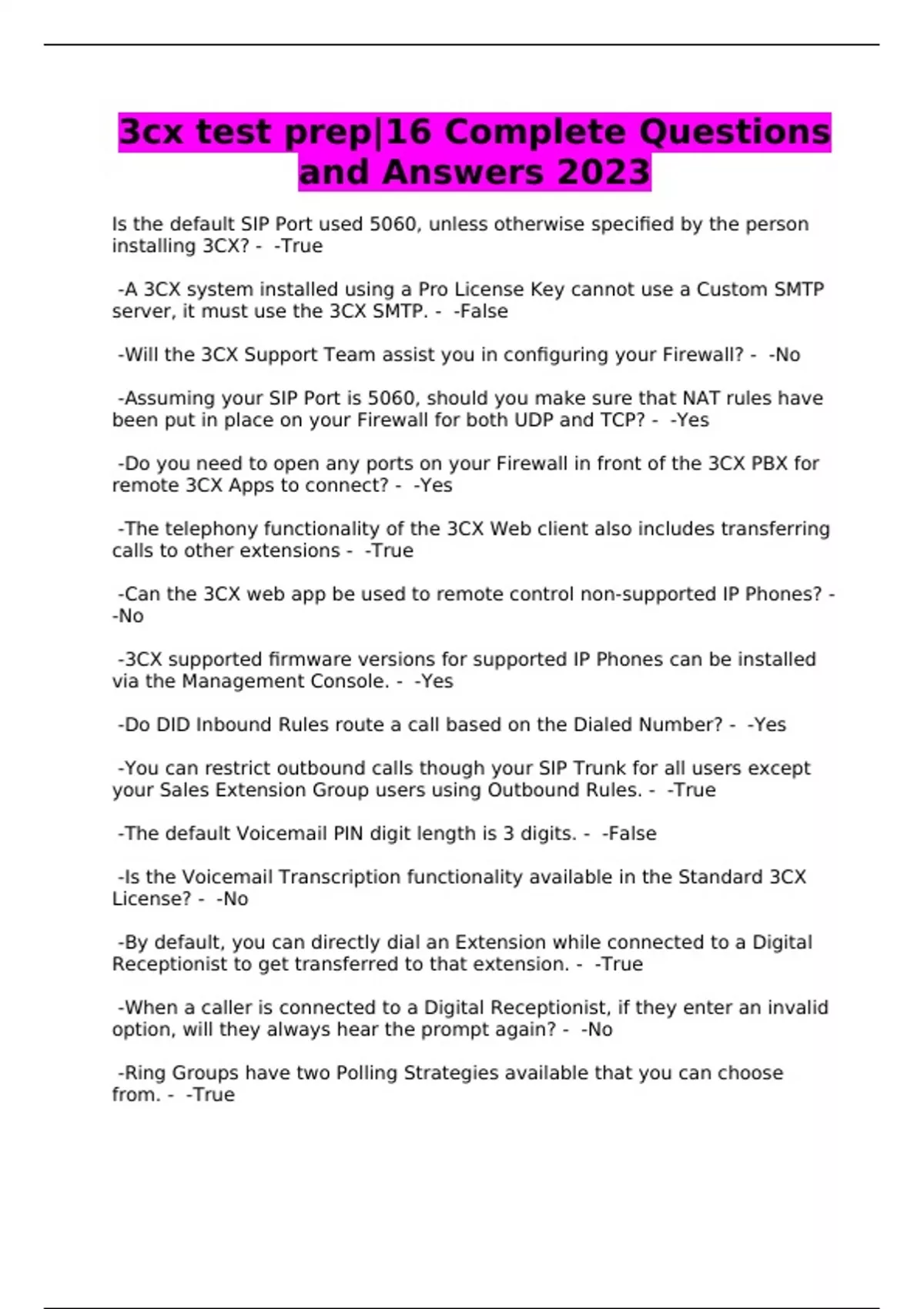3cx test prep|16 Complete Questions