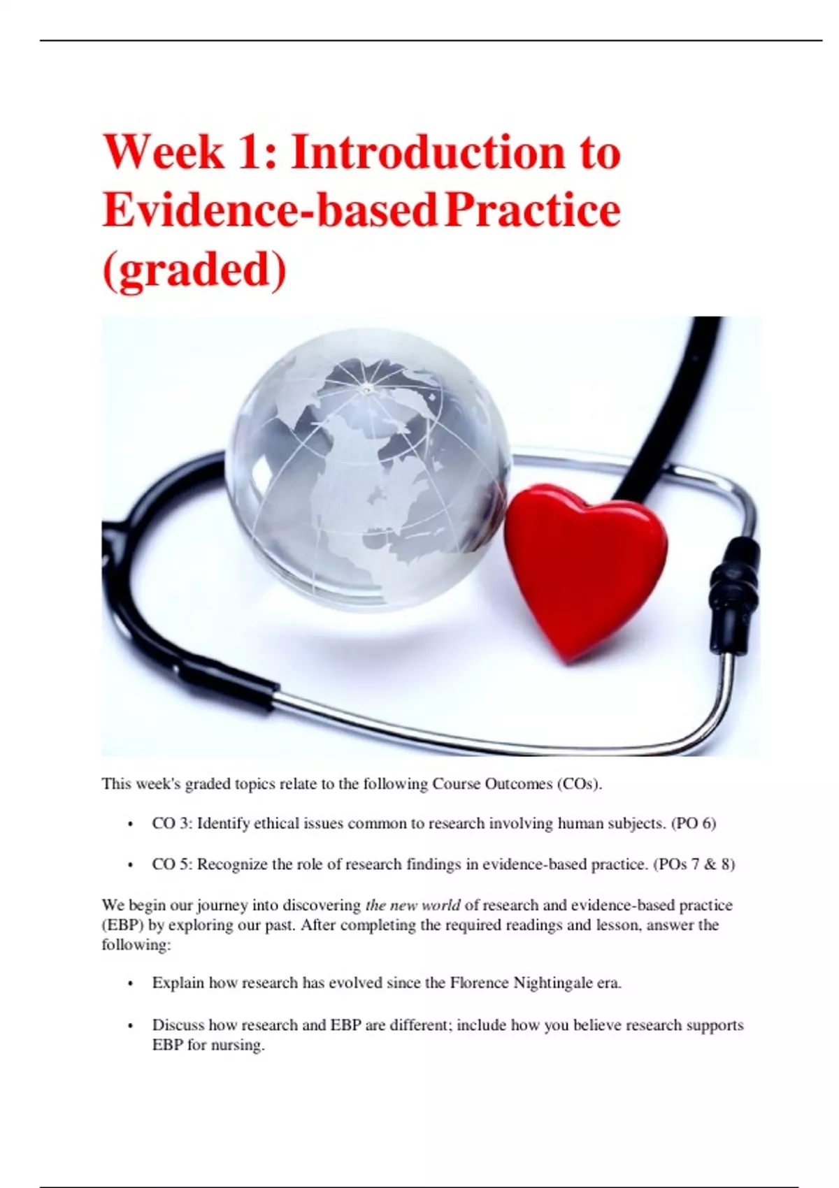 NR 439 Week 1 Discussion Question: Introduction to Evidence-based Practice 2022/2023