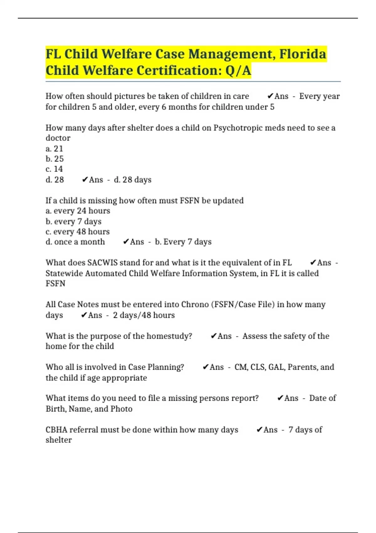 FL Child Welfare Case Management, Florida Child Welfare Certification: Q/A