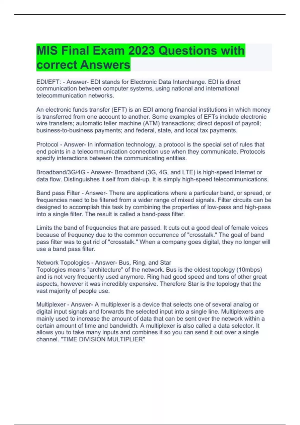 MIS Final Exam 2023 Questions with correct Answers