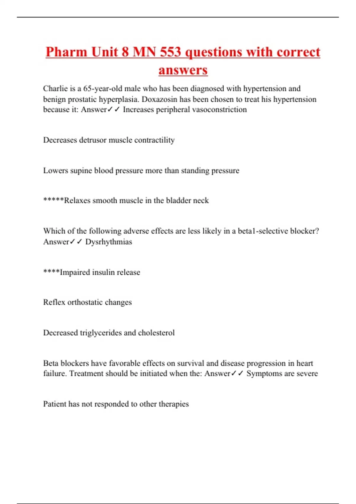 pharm unit 8 mn 553 questions with correct answers