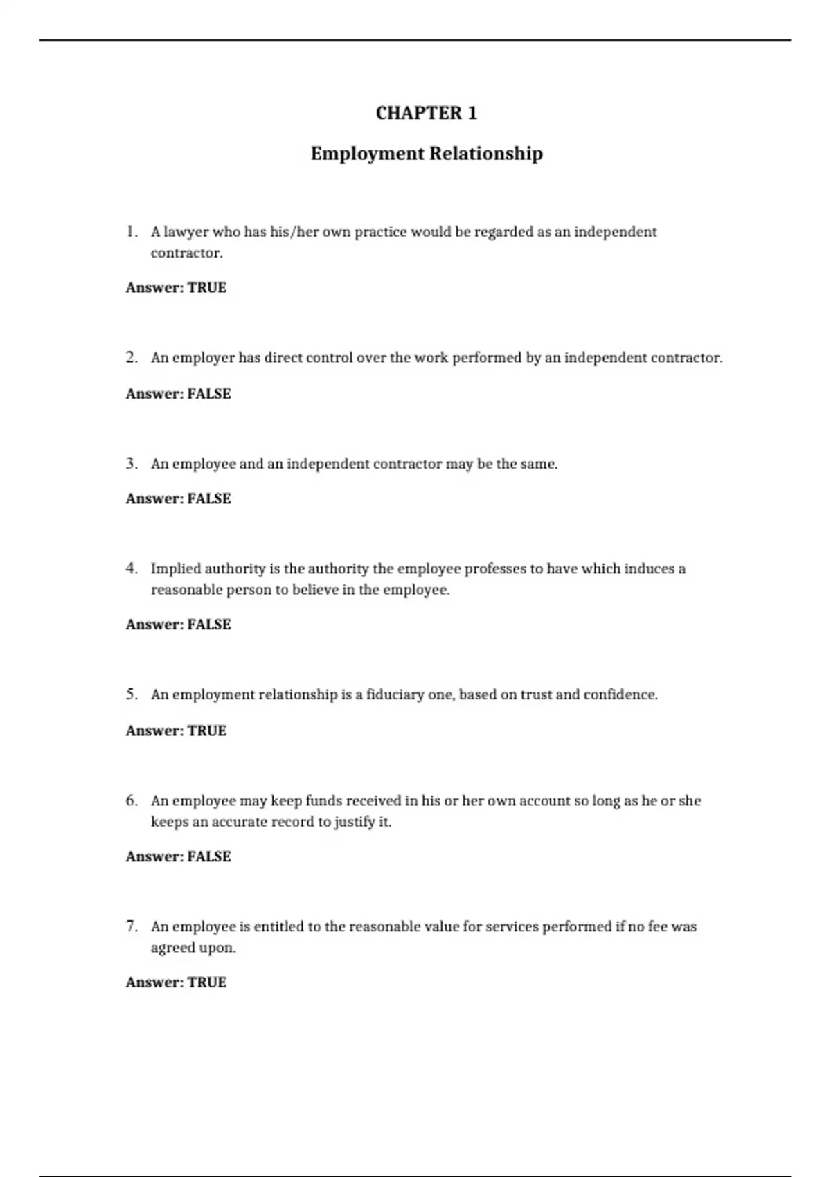 17. An independent contractor is under the direct control of the person hiring him/her.