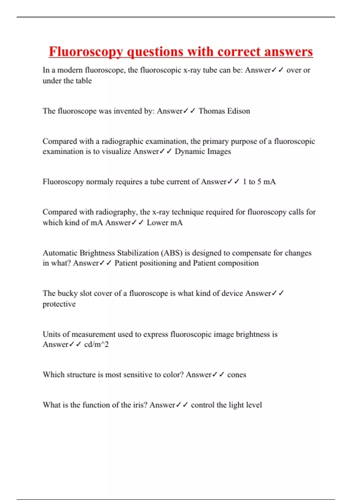 Fluoroscopy questions with correct answers