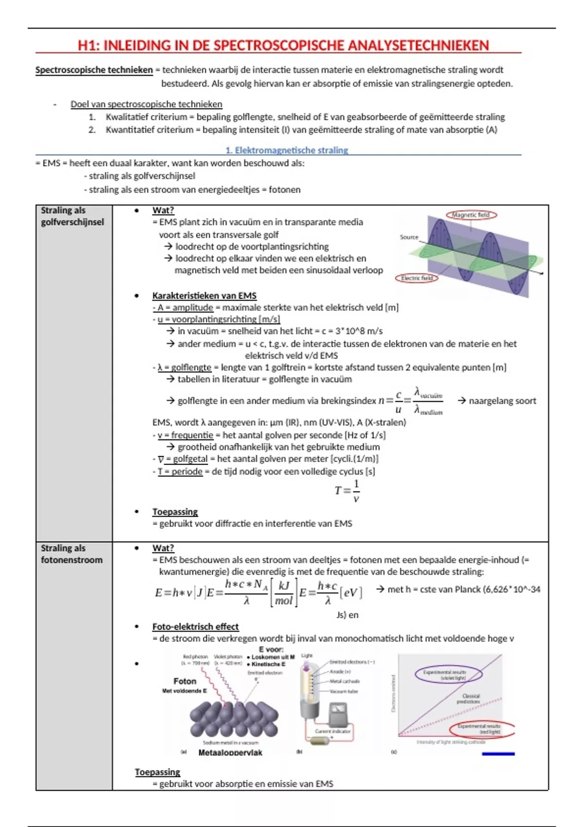 Spectroscopische technieken = technieken waarbij de interactie tussen materie en elektromagnetische straling wordt