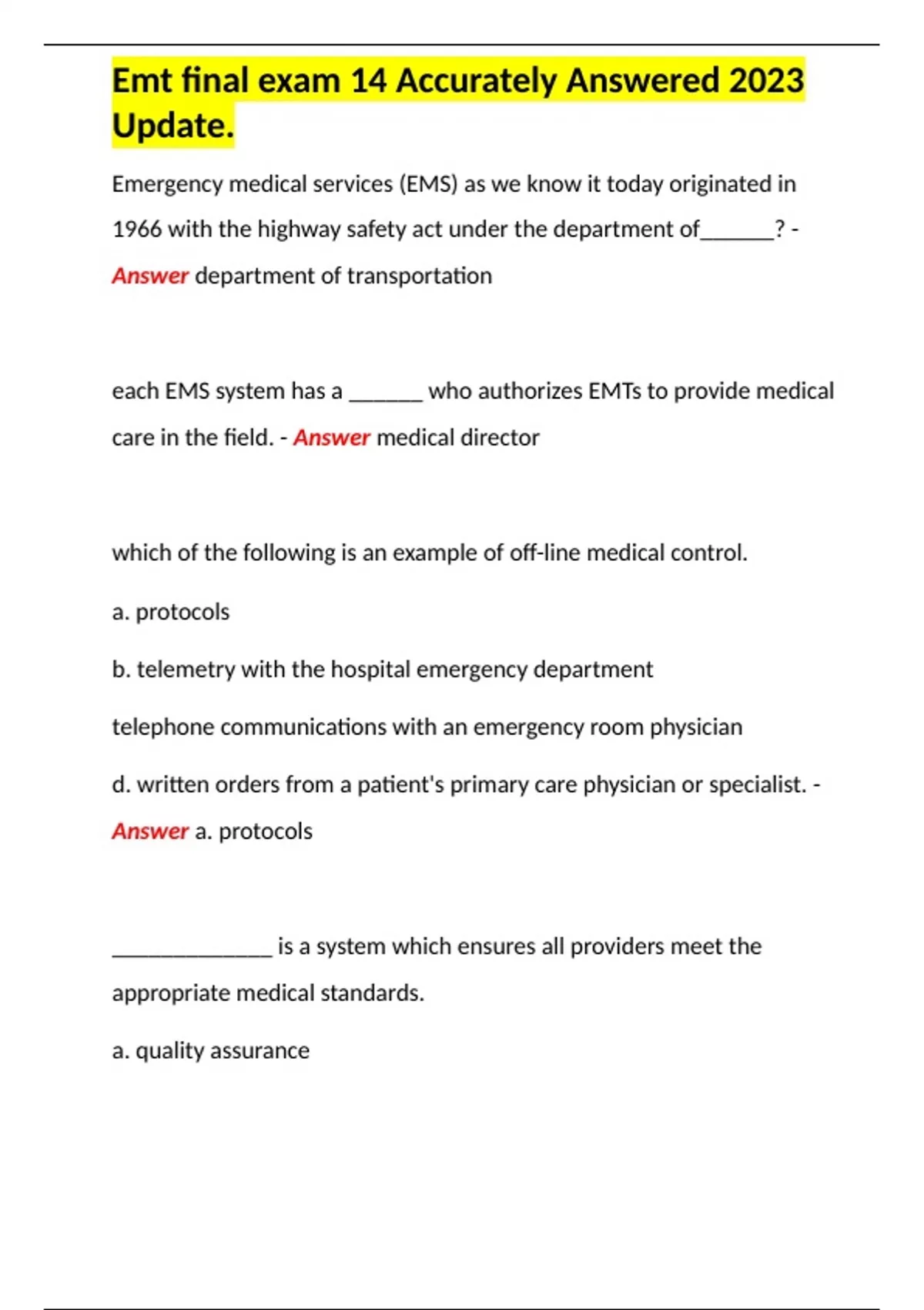 EMT Final Exam Best Graded A+.
