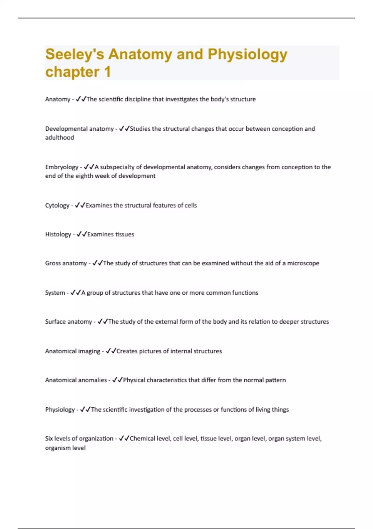 Seeley's Anatomy and Physiology chapter 1 | Questions and Answers with complete solution