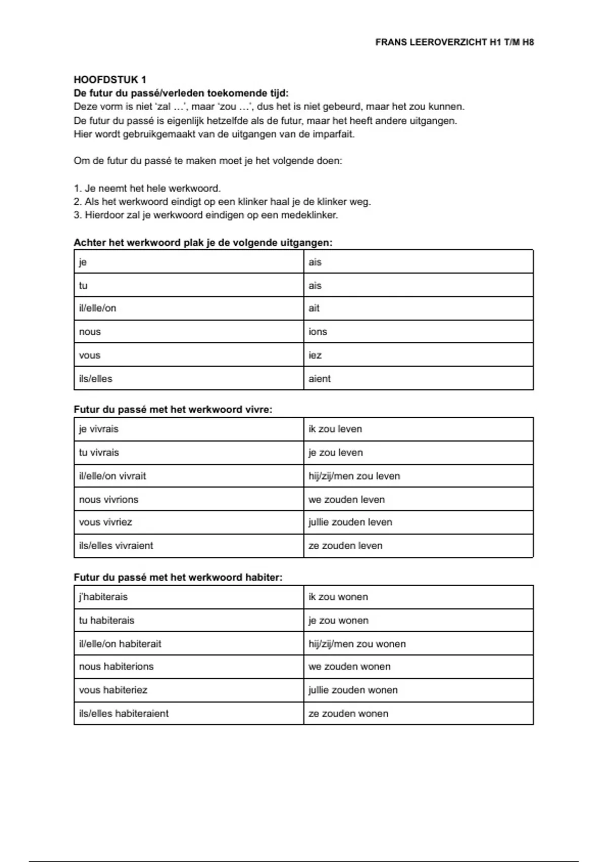 Frans 3vwo, Grandes Lignes | Hoofstuk 1 t/m 8 (alles leerjaar 3) | Bevat het volgende: Uitgebreide informatie over het betreffende onderwerp | Voorbeelden | Werkwoorden |Hoofdstuk 1 t/m 8