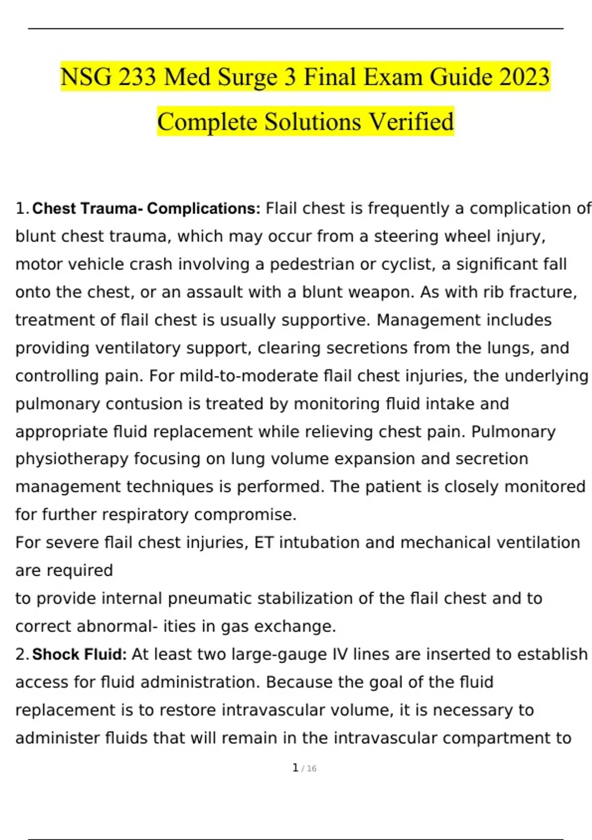 Summary NSG 233 Med Surg 3 Final Exam Guide 2023 Complete Solutions Verified