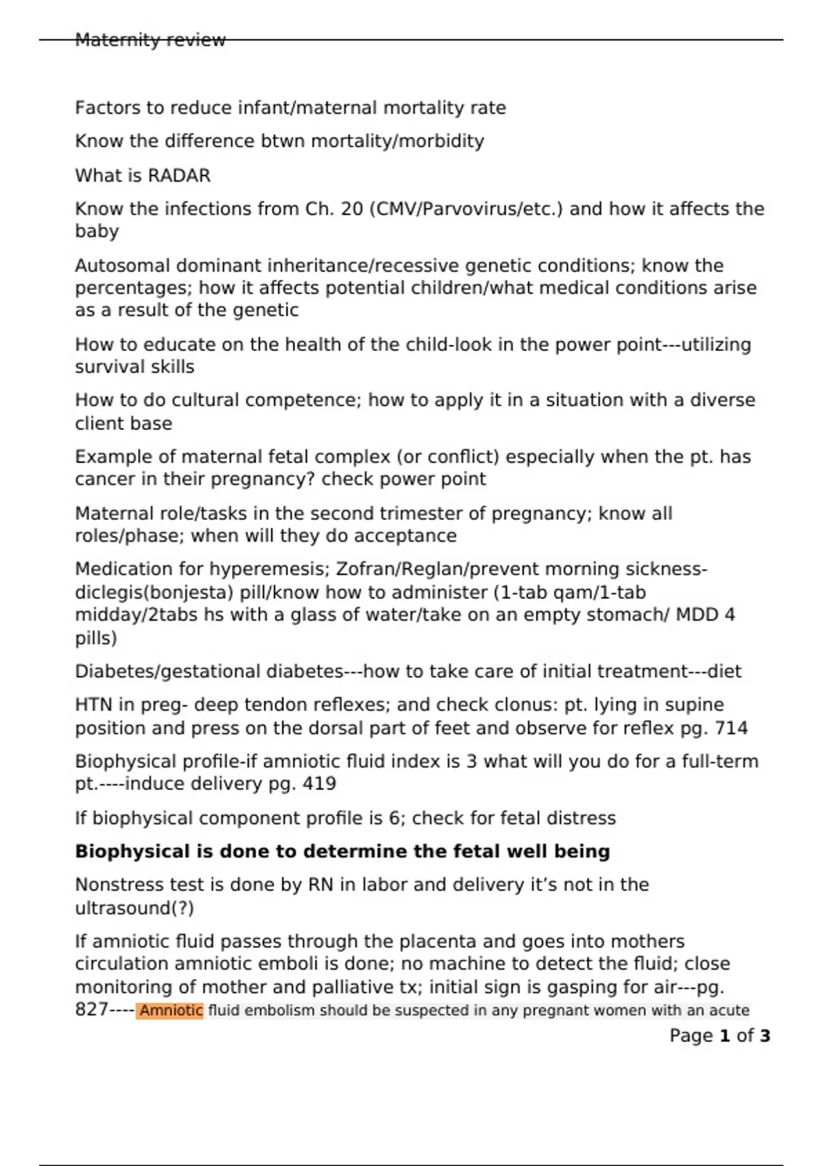 Maternity review notes