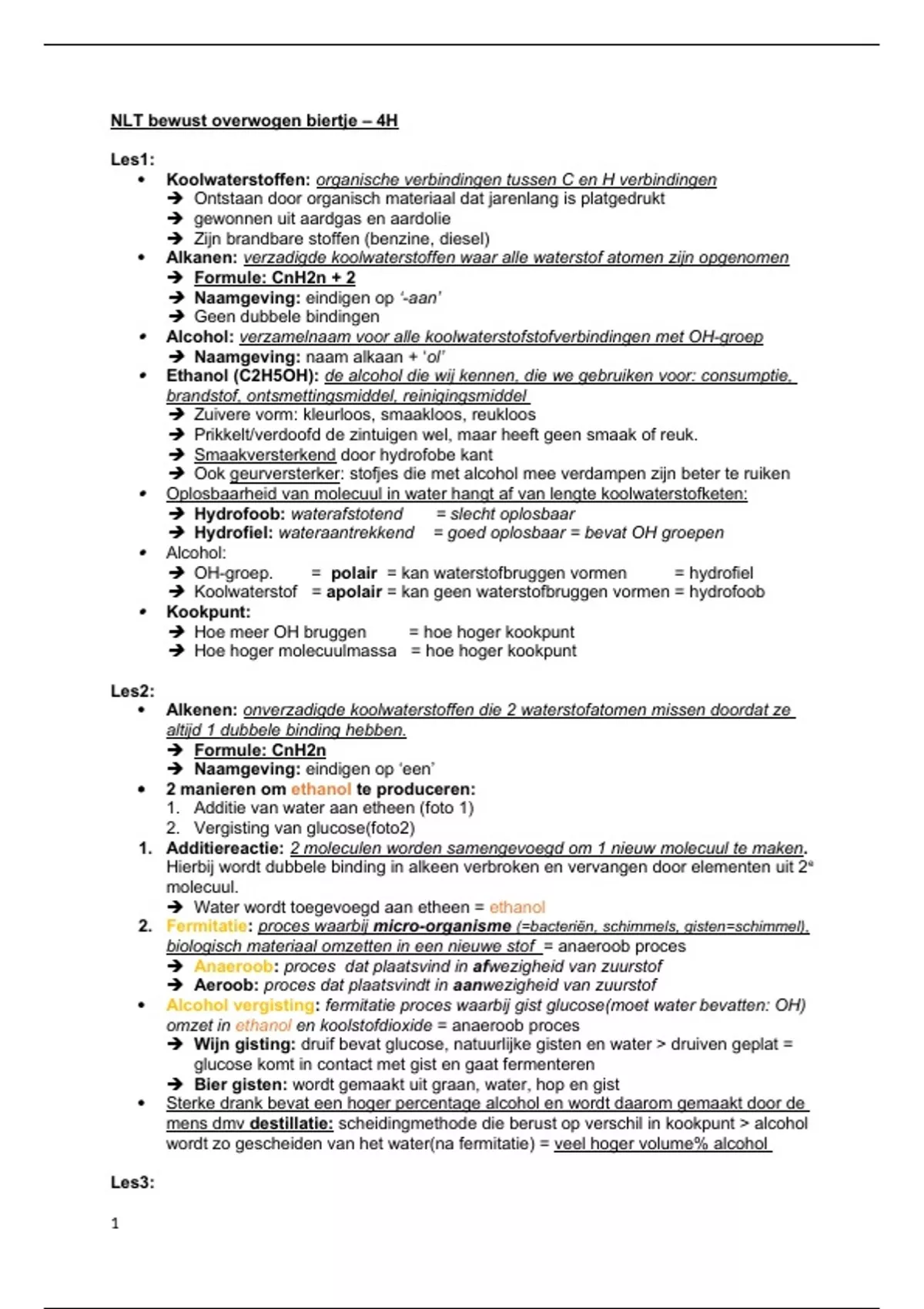 Alcohol: verzamelnaam voor alle koolwaterstofstofverbindingen met OH-groep