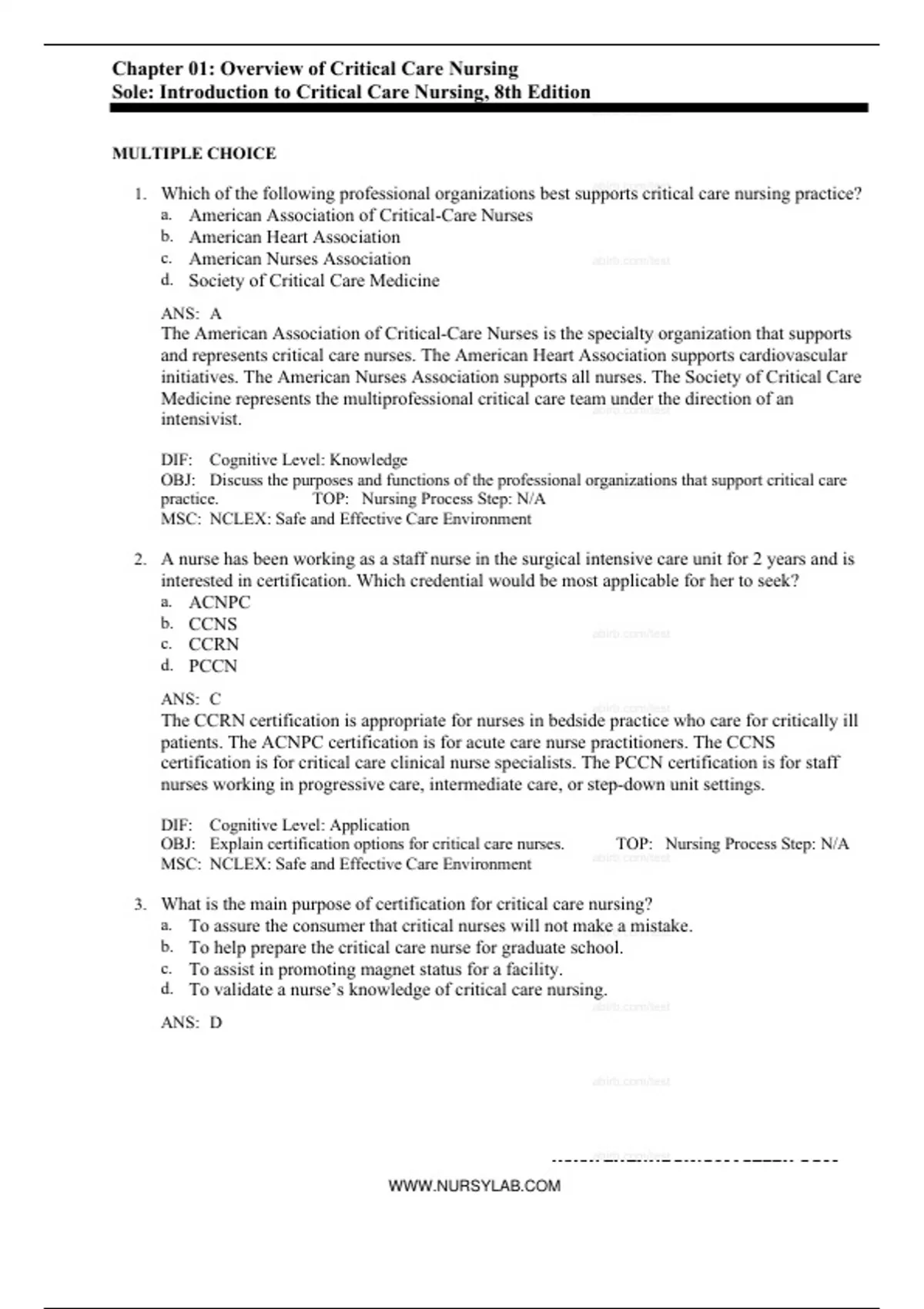 Test Bank For Introduction to Critical Care Nursing 8th Edition By Mary Lou Sole; Deborah Goldenberg Klein; Marthe J. Moseley, Chapter 1-21 Complete Guide
