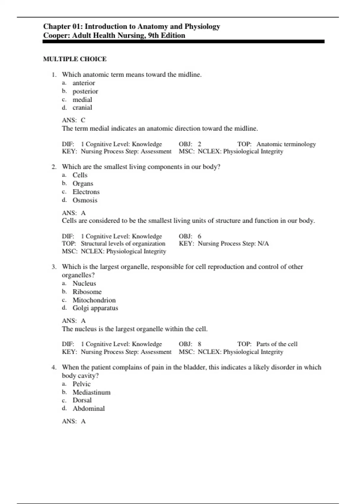 Test Bank For Foundations and Adult Health Nursing 9th Edition By Kim Cooper, Kelly Gosnell 9780323812054, Chapter 1-58 Complete Guide