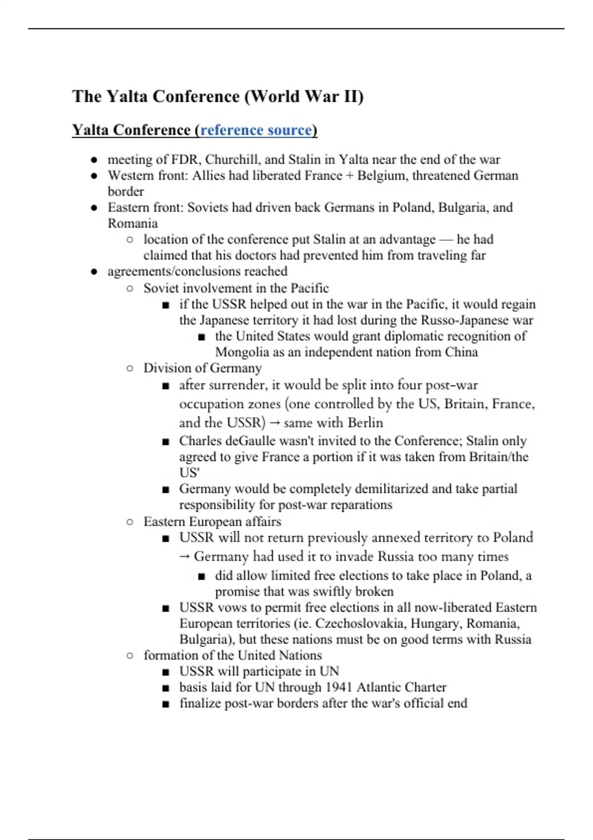 These notes cover the middle to end of historical period 7 with a focus on the Yalta Conference and international diplomacy during World War 2.