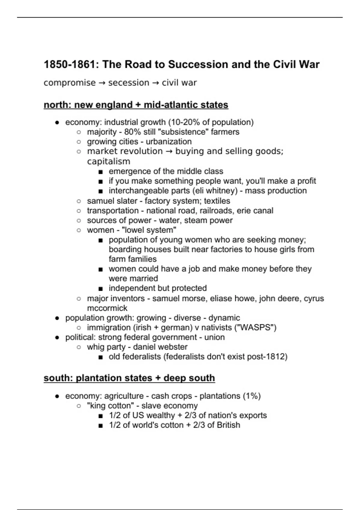 These notes cover the middle of historical period 3, with a focus on rising tensions between the North and South, what led to the Civil War, and other relevant topics.