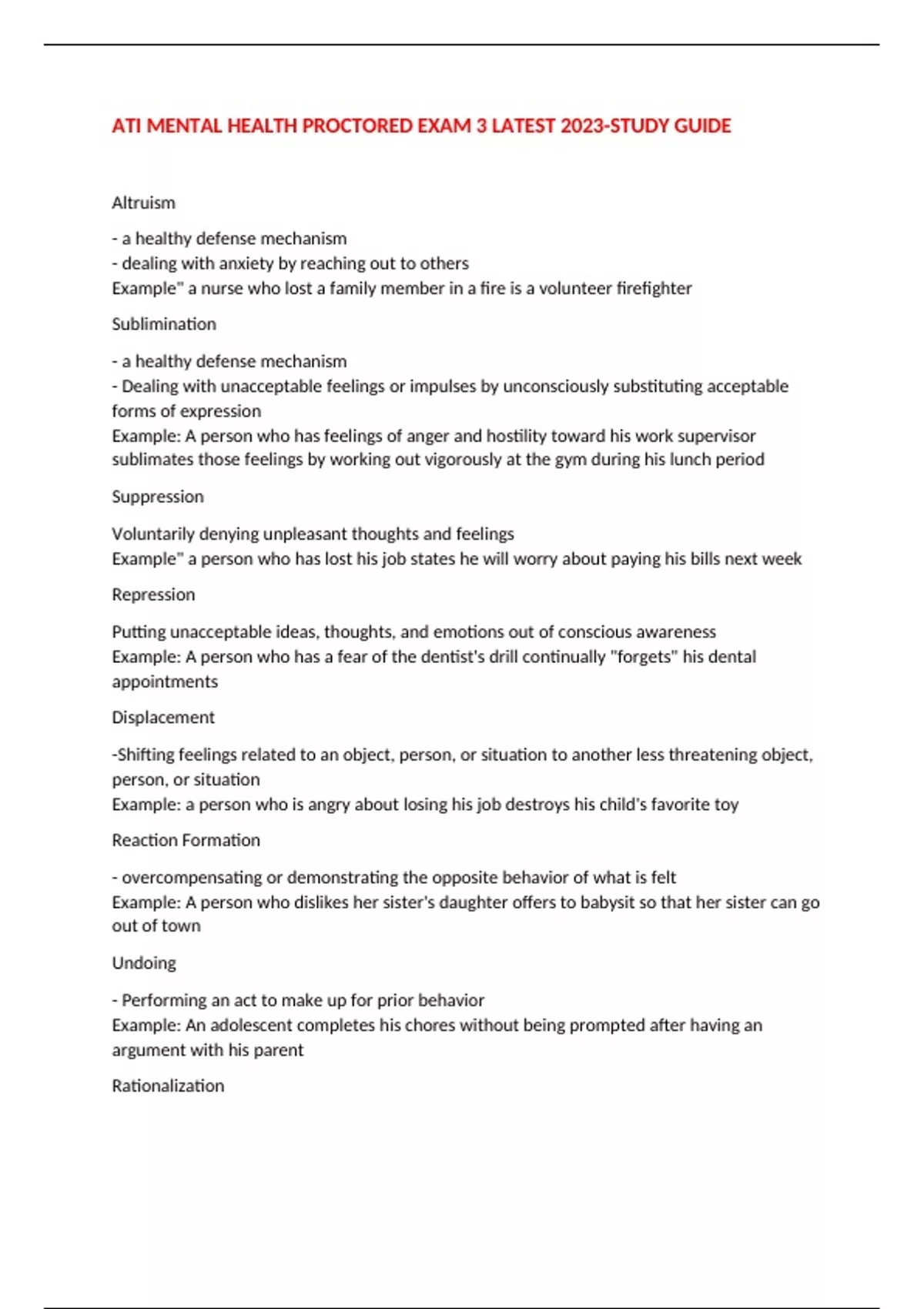 ATI MENTAL HEALTH PROCTORED EXAM 3 LATEST 2023-STUDY GUIDE