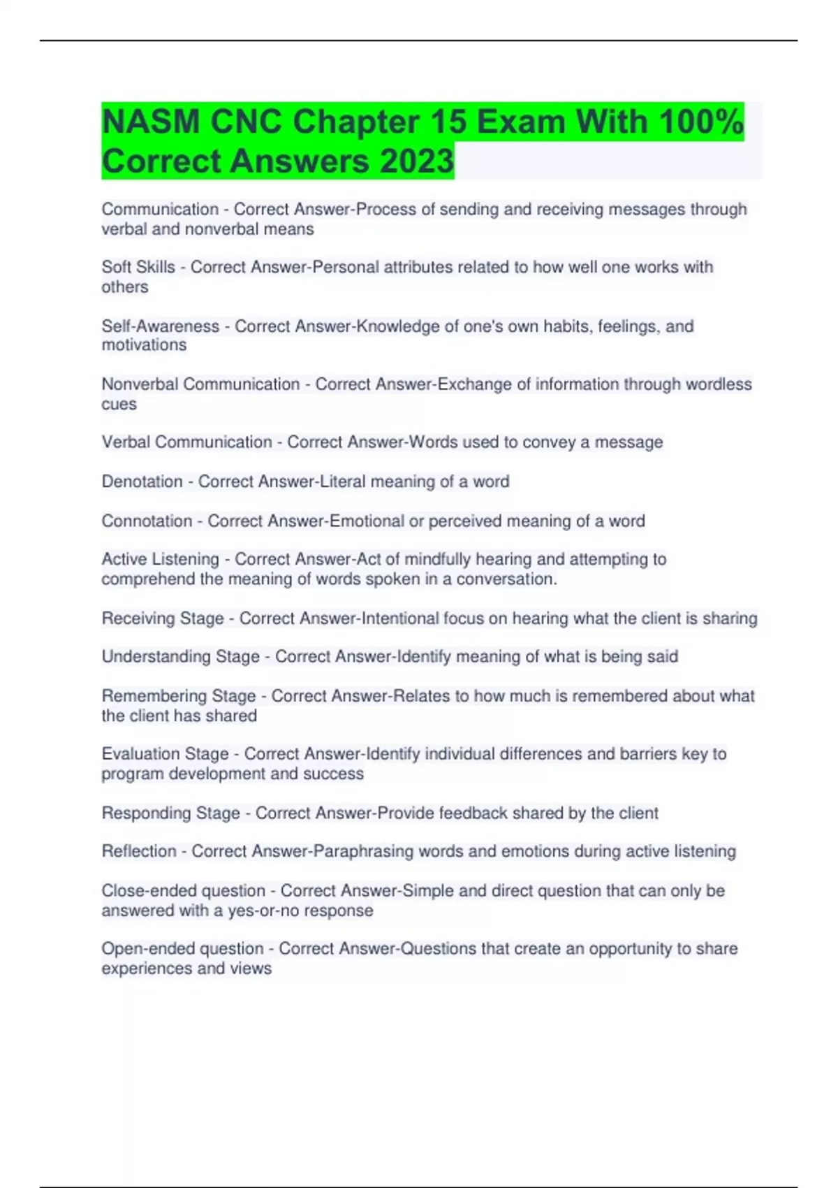 NASM CNC Chapter 15 Exam With 100% Correct Answers 2023