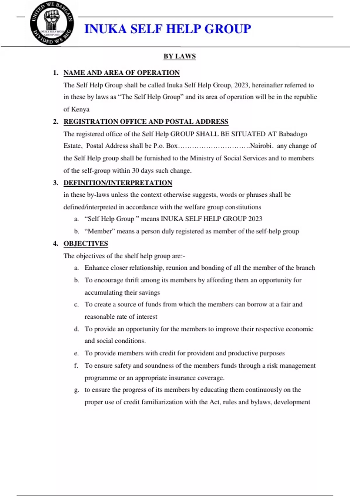 The Self Help Group shall be called Inuka Self Help Group, 2023, hereinafter referred to