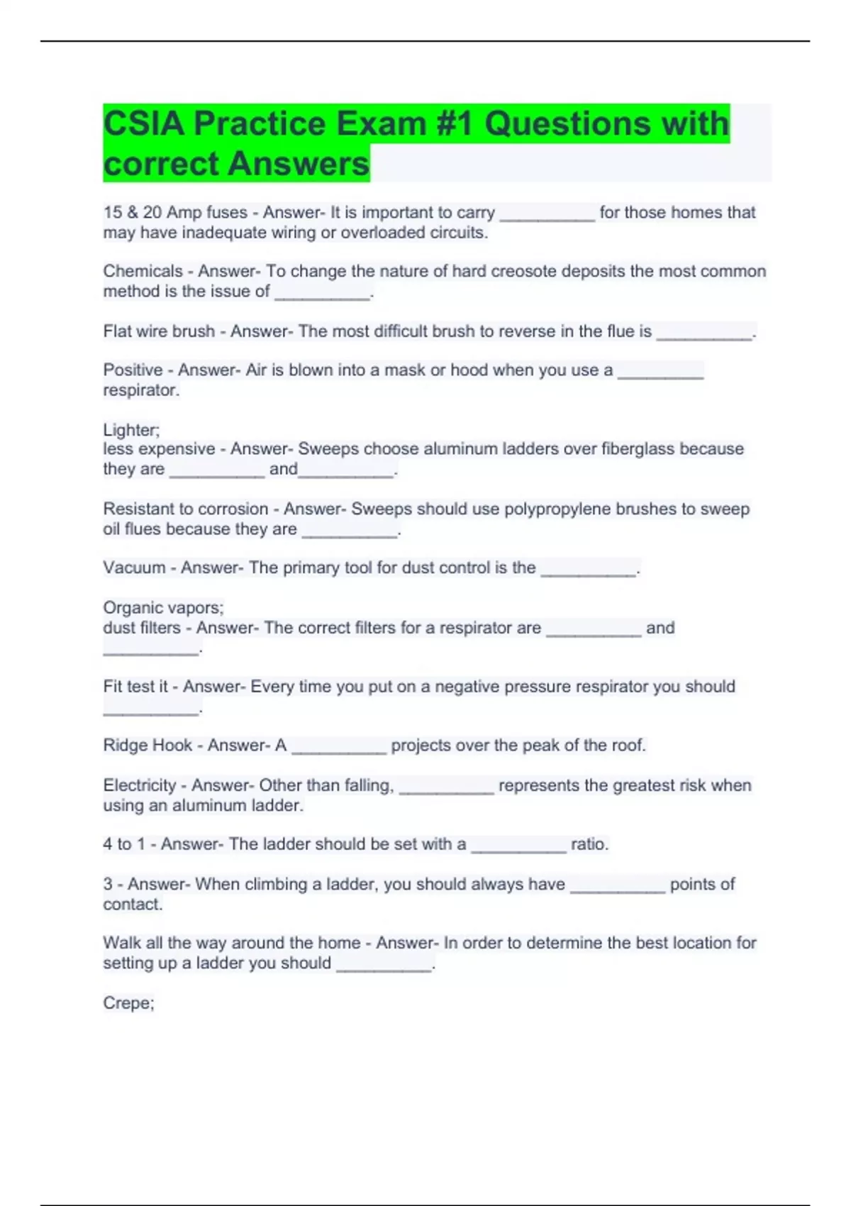 CSIA Practice Exam #1 Questions with correct Answers