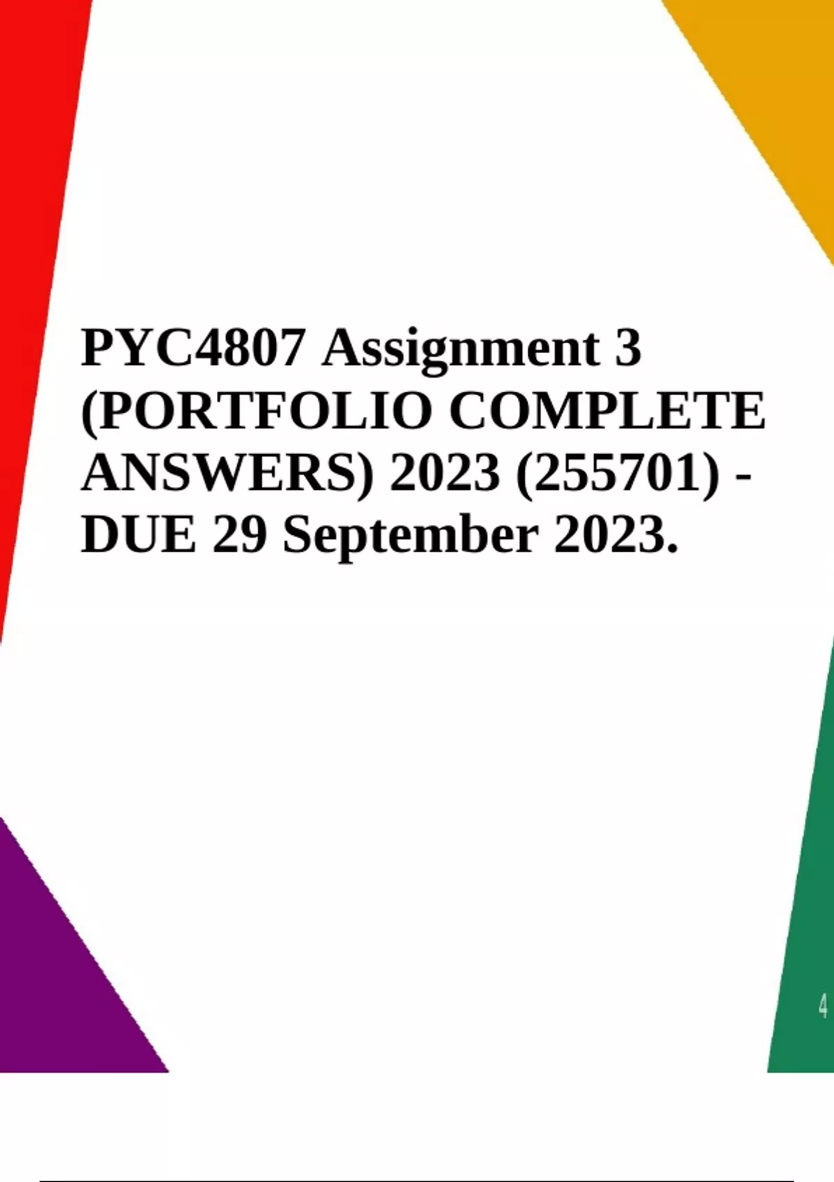 PYC4807 Assignment 3 (PORTFOLIO COMPLETE ANSWERS) 2023 (255701) - DUE 29 September 2023.
