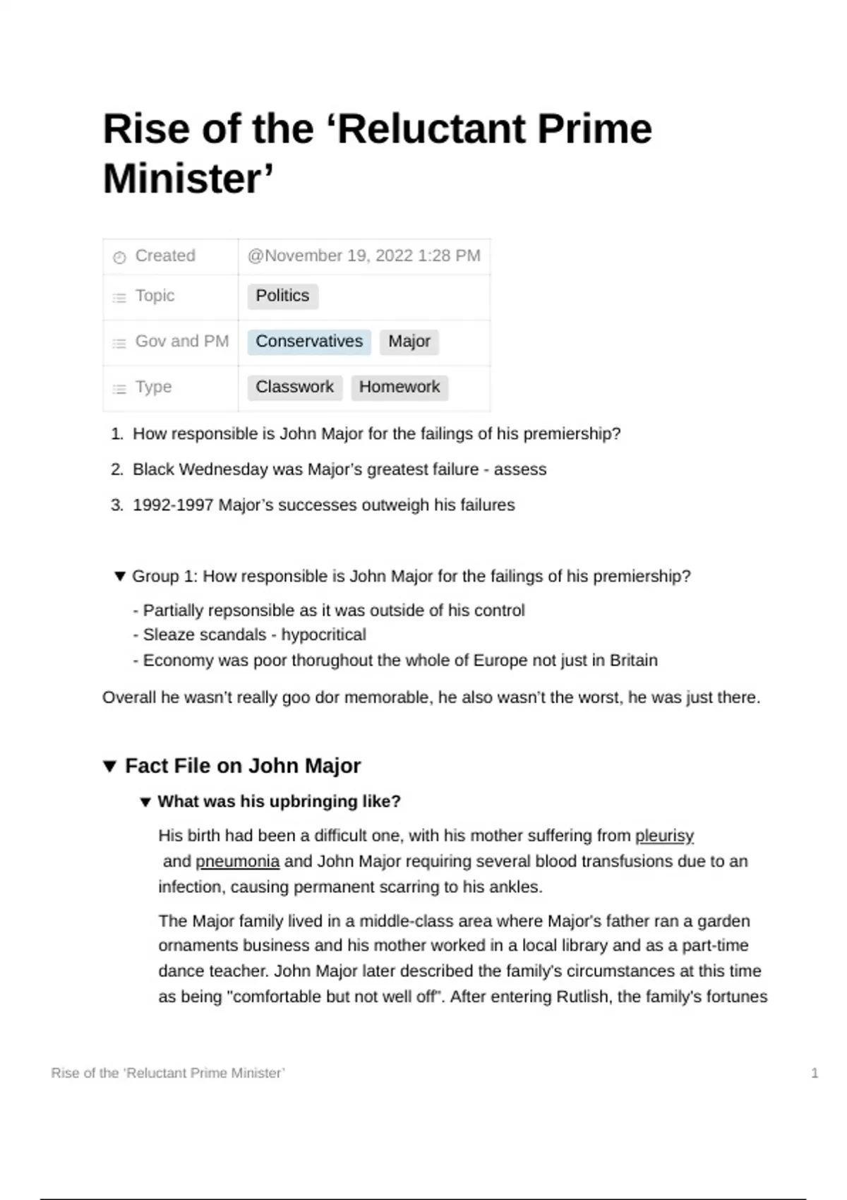Group 1: How responsible is John Major for the failings of his premiership?