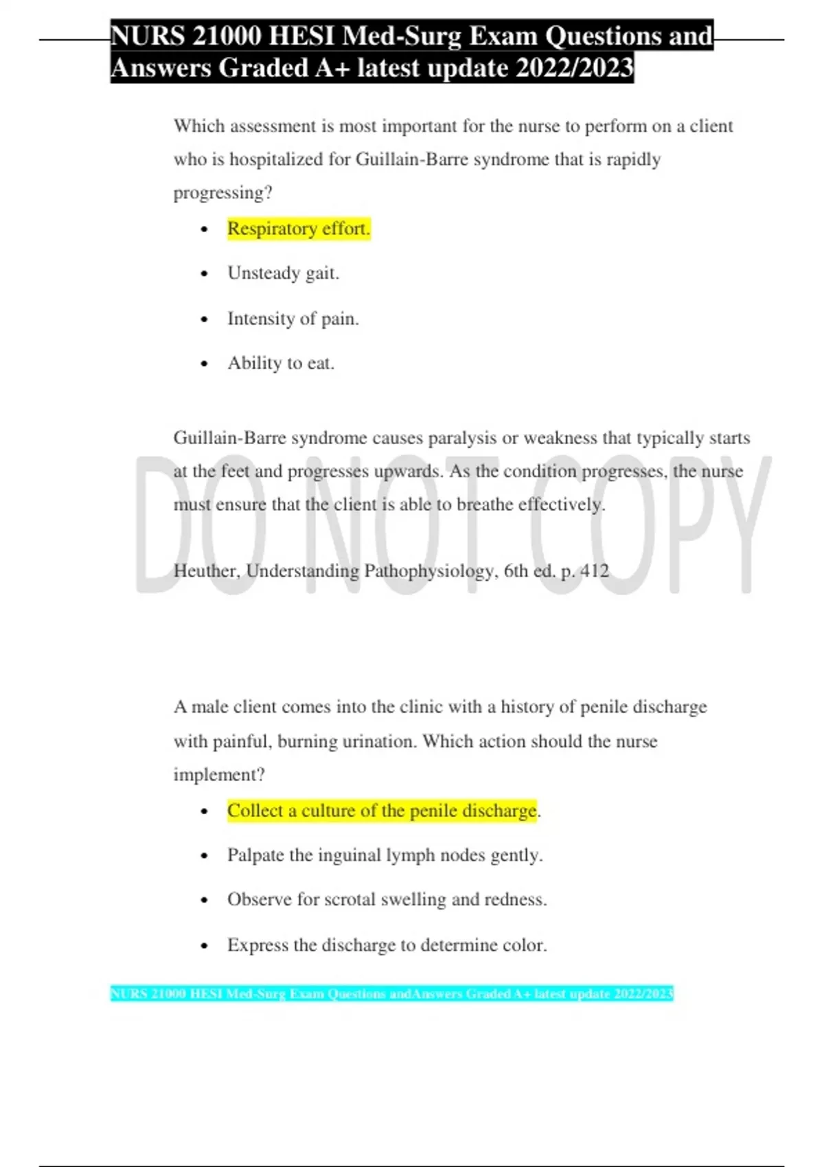 NURS 21000 HESI Med-Surg Exam Questions andAnswers Graded A+ latest update 2022/2023