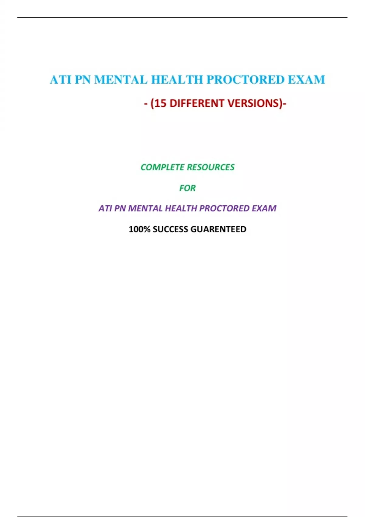 ATI PN MENTAL HEALTH PROCTORED EXAM