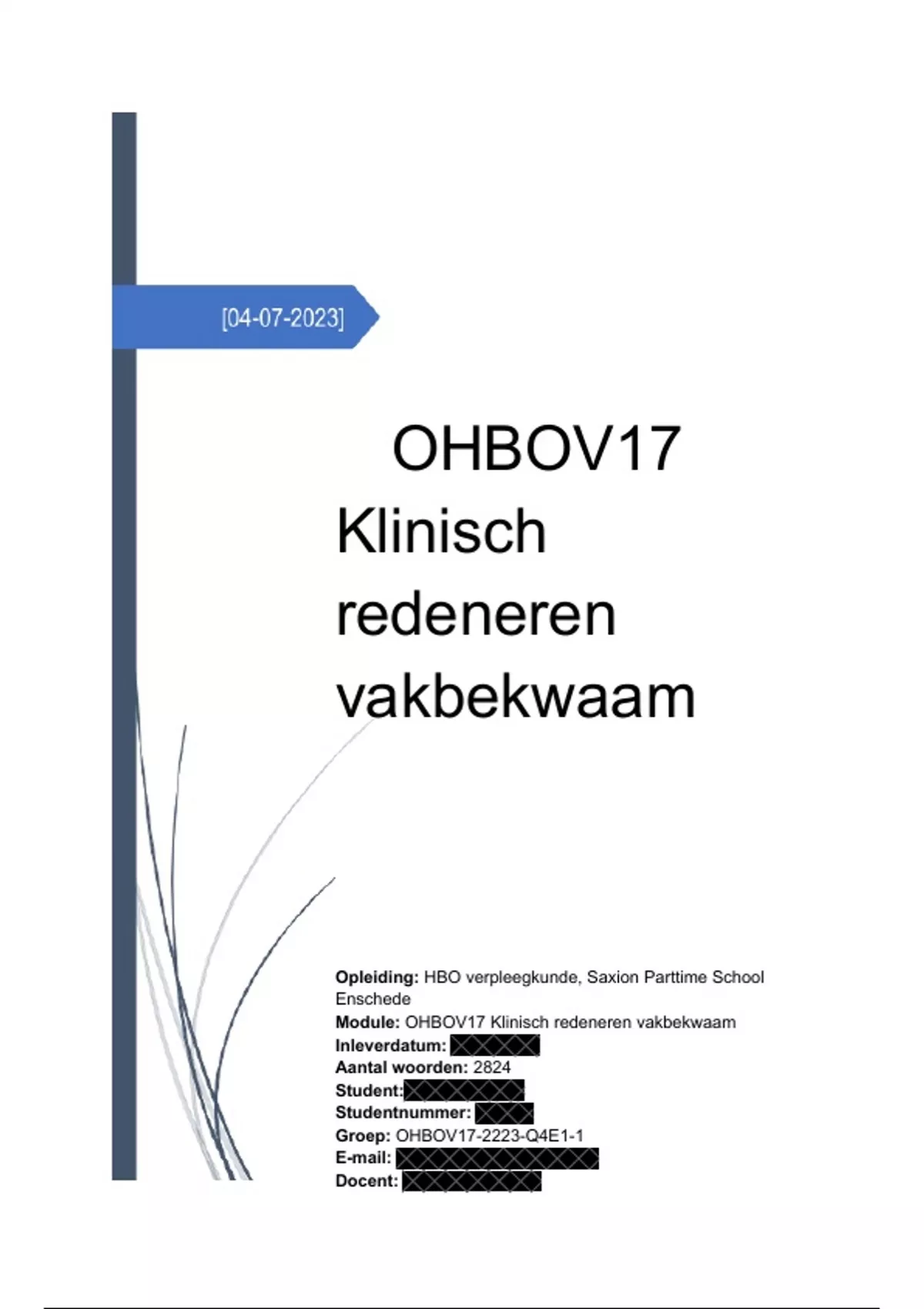 Voor u ligt mijn verslag voor de module OHBOV17 Klinisch redeneren vakbekwaam gemaakt