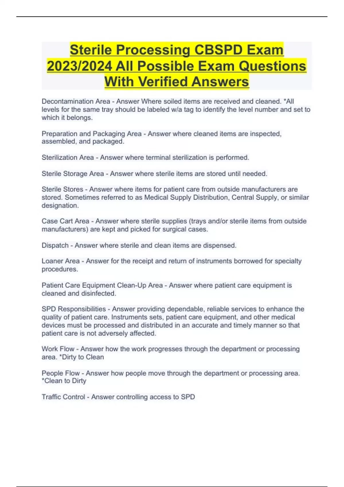 Sterile Processing CBSPD Exam 2023/2024 All Possible Exam Questions With Verified Answers