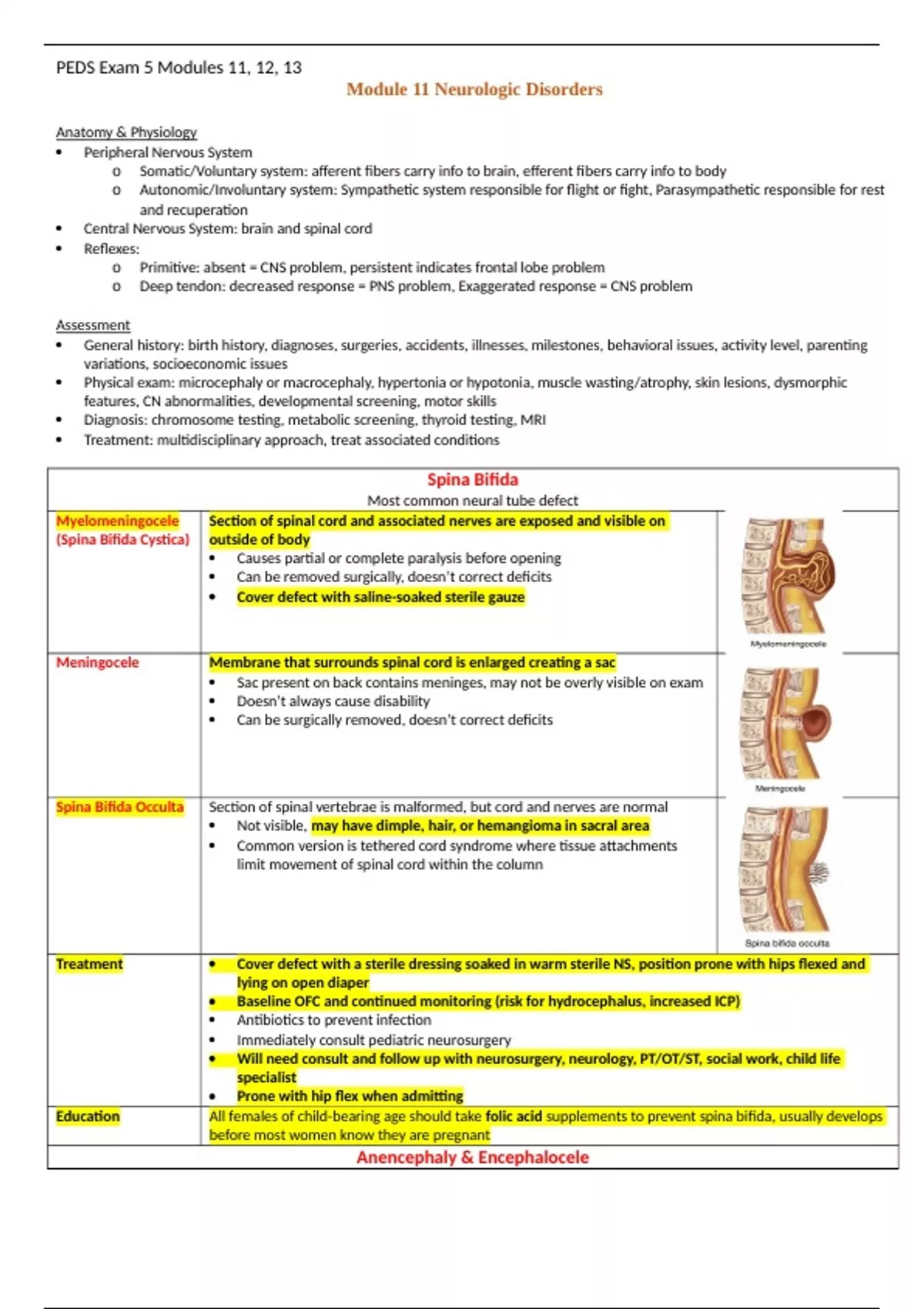 , Anencephaly Neural cord defect where majority of brain doesn’t develop