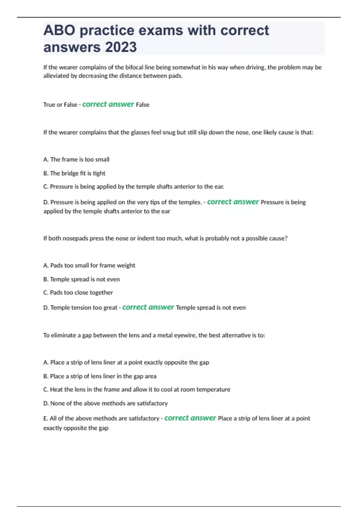 ABO practice exams with correct answers 2023
