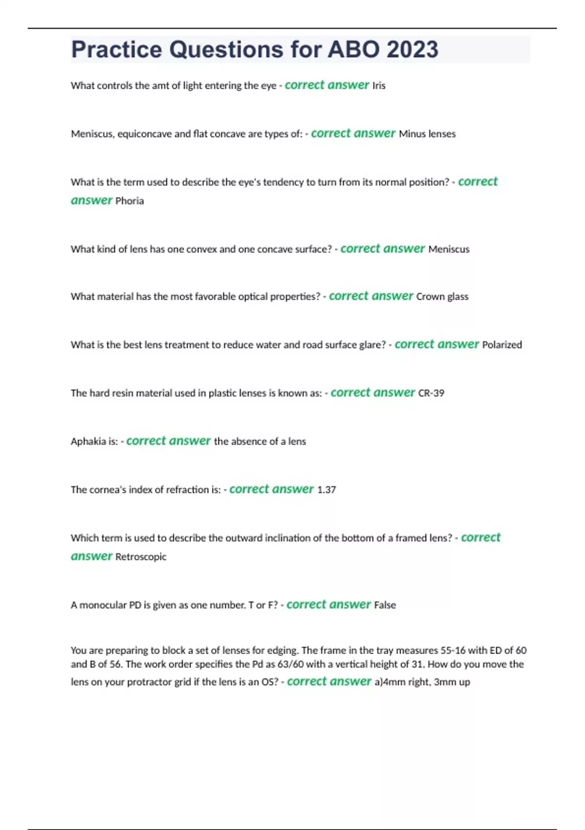 Practice Questions for ABO 2023