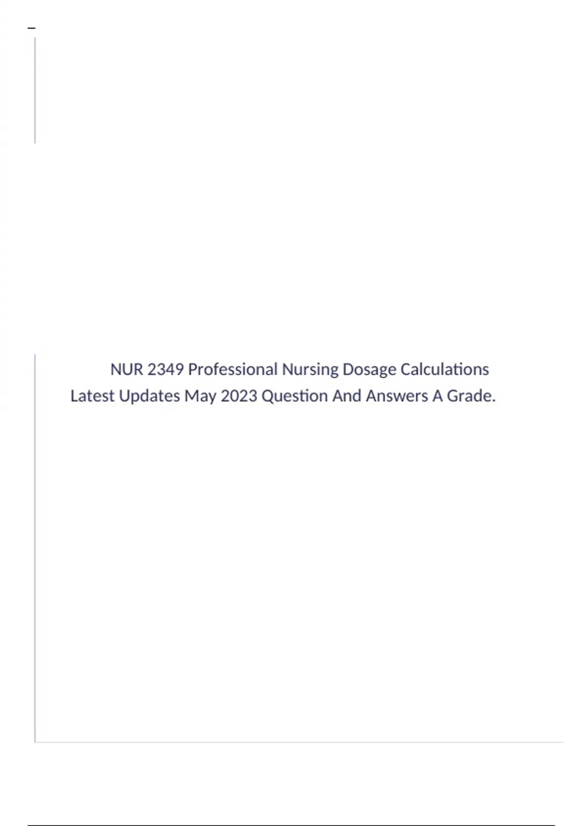 NUR 2349 Professional Nursing Dosage Calculations Latest Updates May 2023 Question And Answers A Grade.