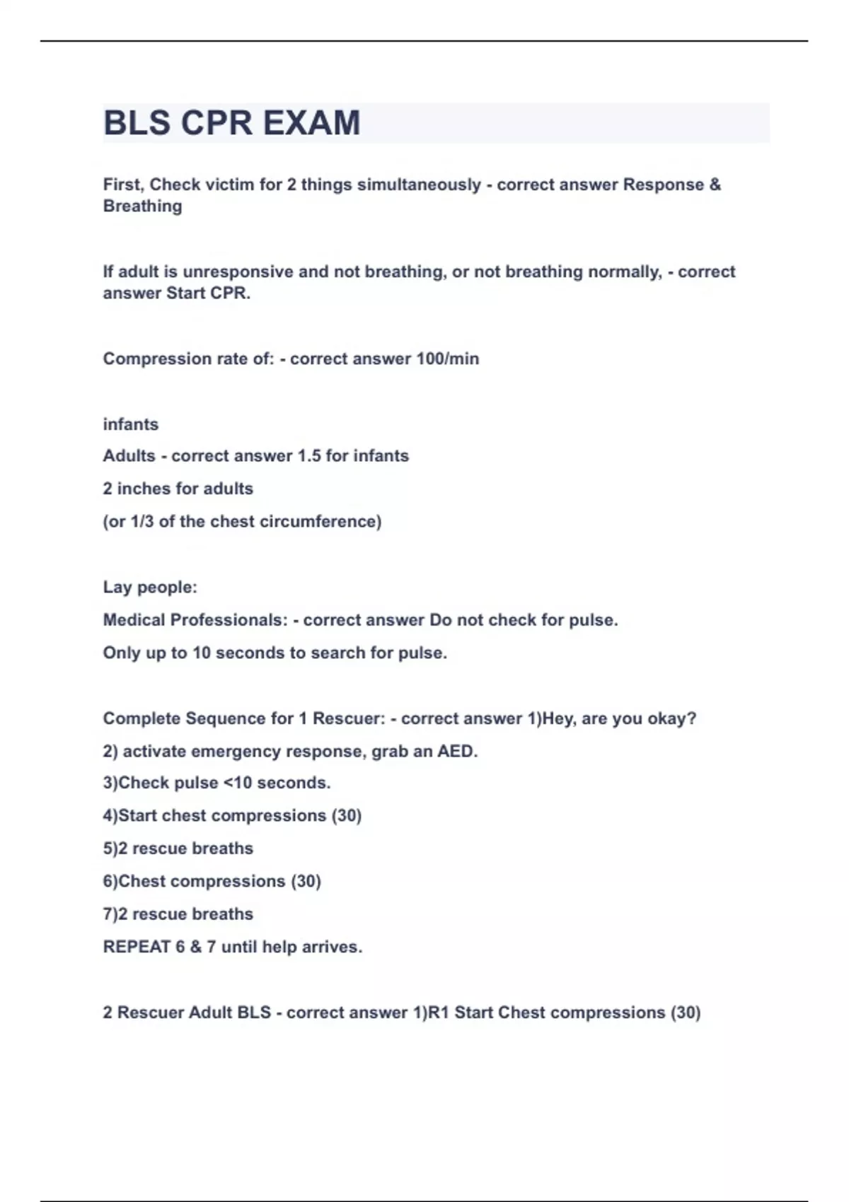 BLS CPR EXAM|UPDATED&VERIFIED|100% SOLVED|GUARANTEED SUCCESS