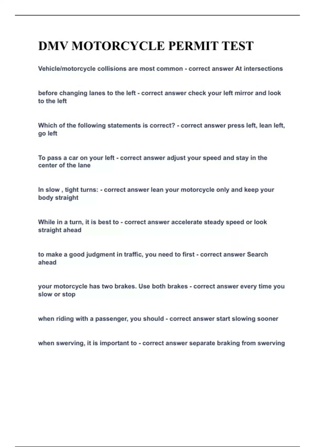 DMV MOTORCYCLE PERMIT TEST|UPDATED&VERIFIED|100% SOLVED|GUARANTEED SUCCESS