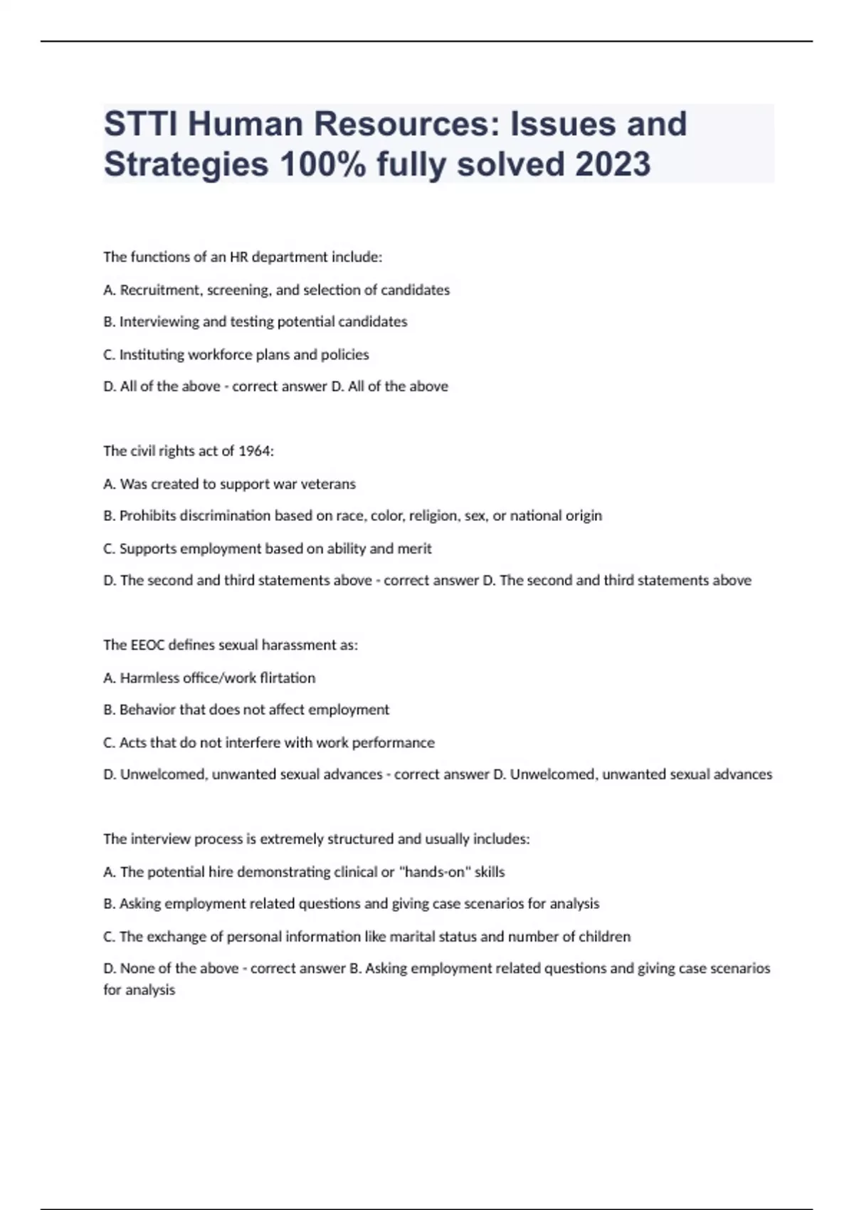 D. None of the above - correct answer B. Asking employment related questions and giving case scenarios