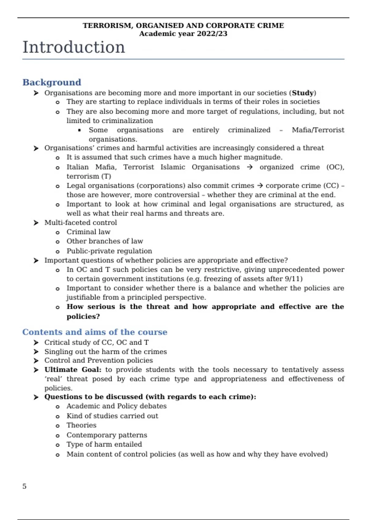 TERRORISM, ORGANISED AND CORPORATE CRIME