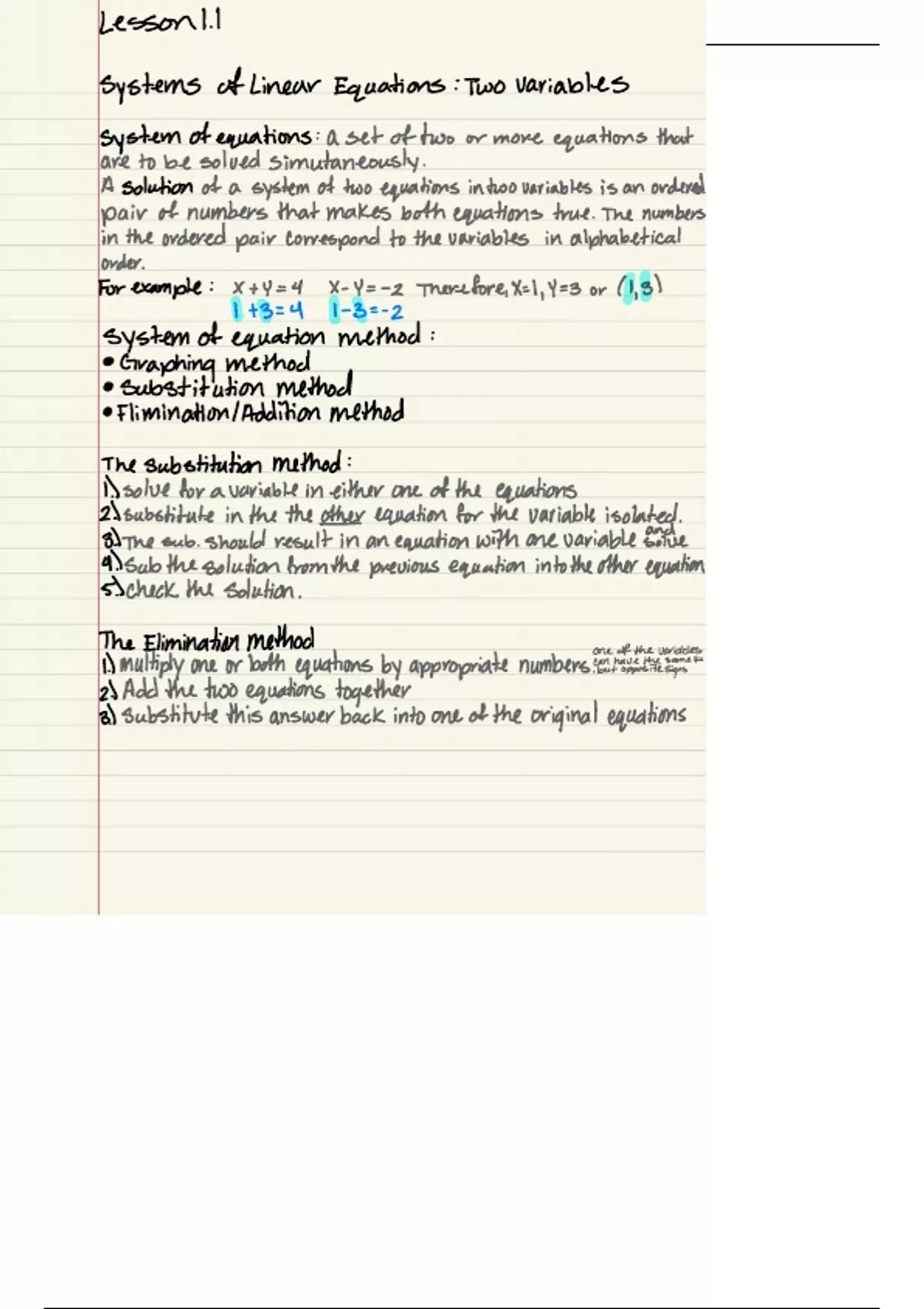Simple notes from math 217 lesson 1.1 about the systems of linear equations using two variables.