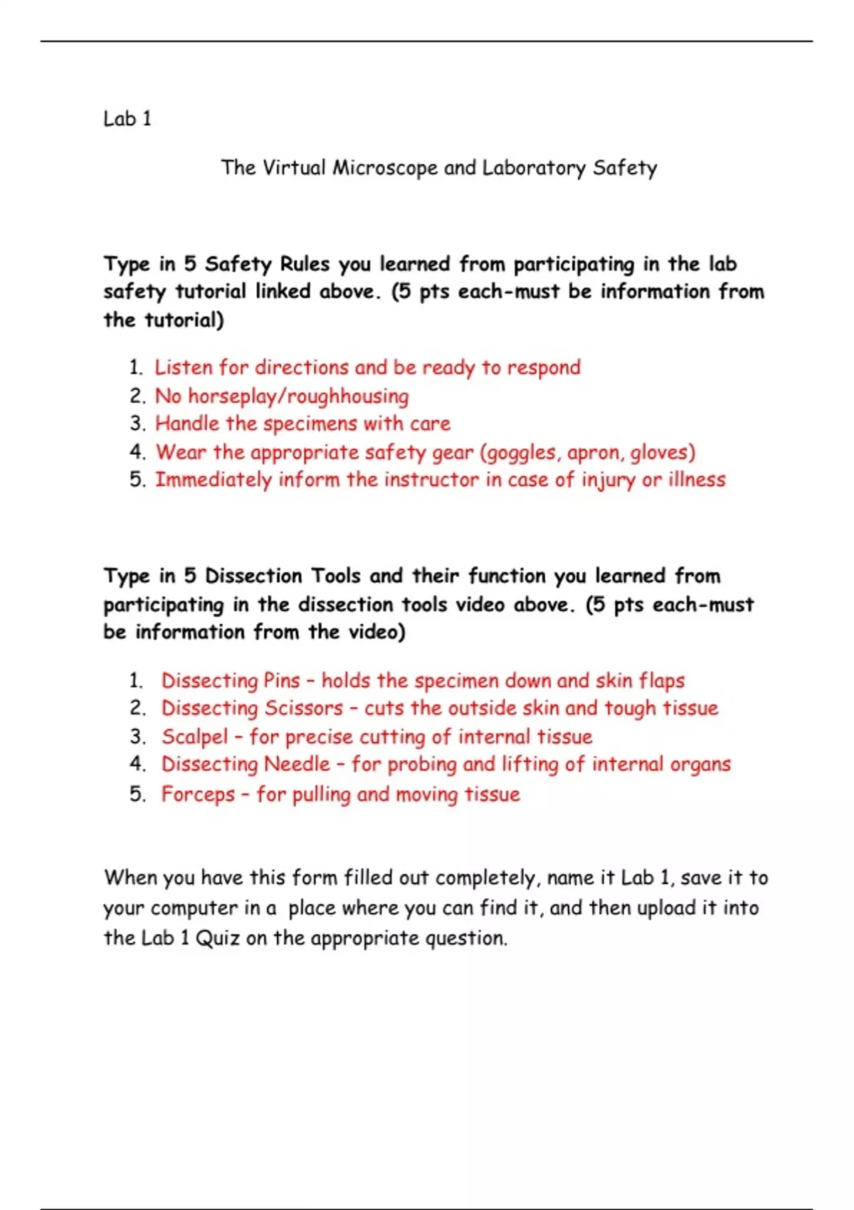 Document for Lab 1 for BIO 1144