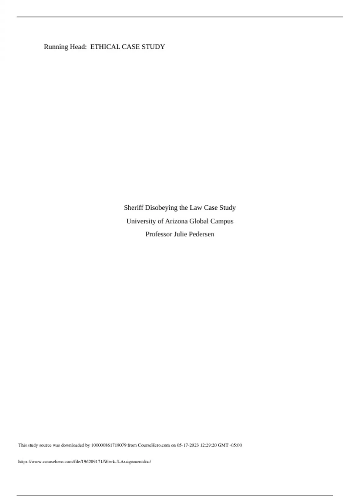 he Case Study: Applying an Ethical Theory paper Must be four to five double-spaced pages in length (not including title and references pages) and formatted according to APA StyleLinks to an external site. as outlined in the Writing Center’s APA Formatting for Microsoft WordLinks to an external site. resources. Must include a separate title page with the following in title case: title of paper in bold font Space should appear between the title and the rest of the information on the title page. student’s name name of institution (The University of Arizona Global Campus) course name and number instructor’s name due date Must utilize academic voice. See the Academic VoiceLinks to an external site. resource for additional guidance. Must include an introduction and conclusion paragraph. Your introduction paragraph needs to end with a clear thesis statement that indicates the purpose of your paper. For assistance on writing Introductions & ConclusionsLinks to an external site. and Writing a Thesis StatementLinks to an external site., refer to the Writing Center resources. Must use at least two scholarly sources and one article, video, blog, or other source related to the case study.