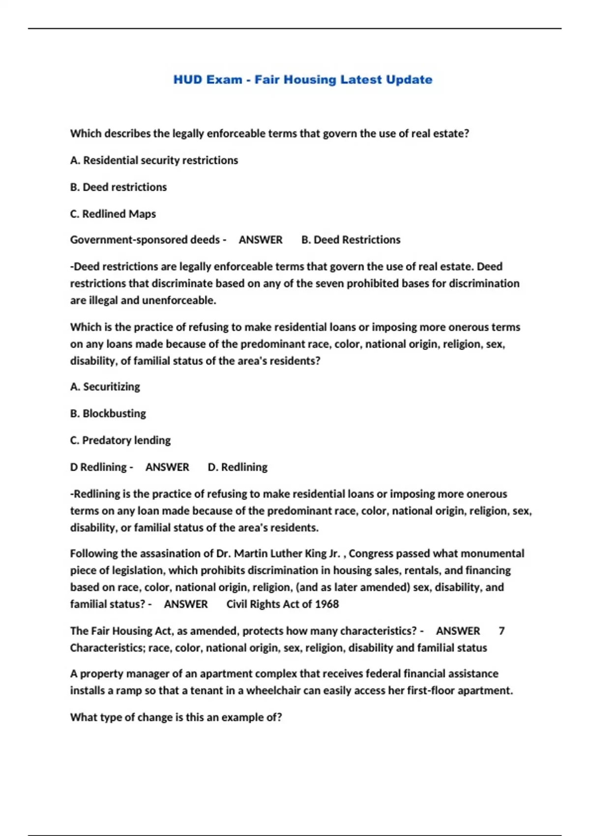 HUD PACKAGED EXAMS WITH ALL QUESTIONS AND ANSWERS
